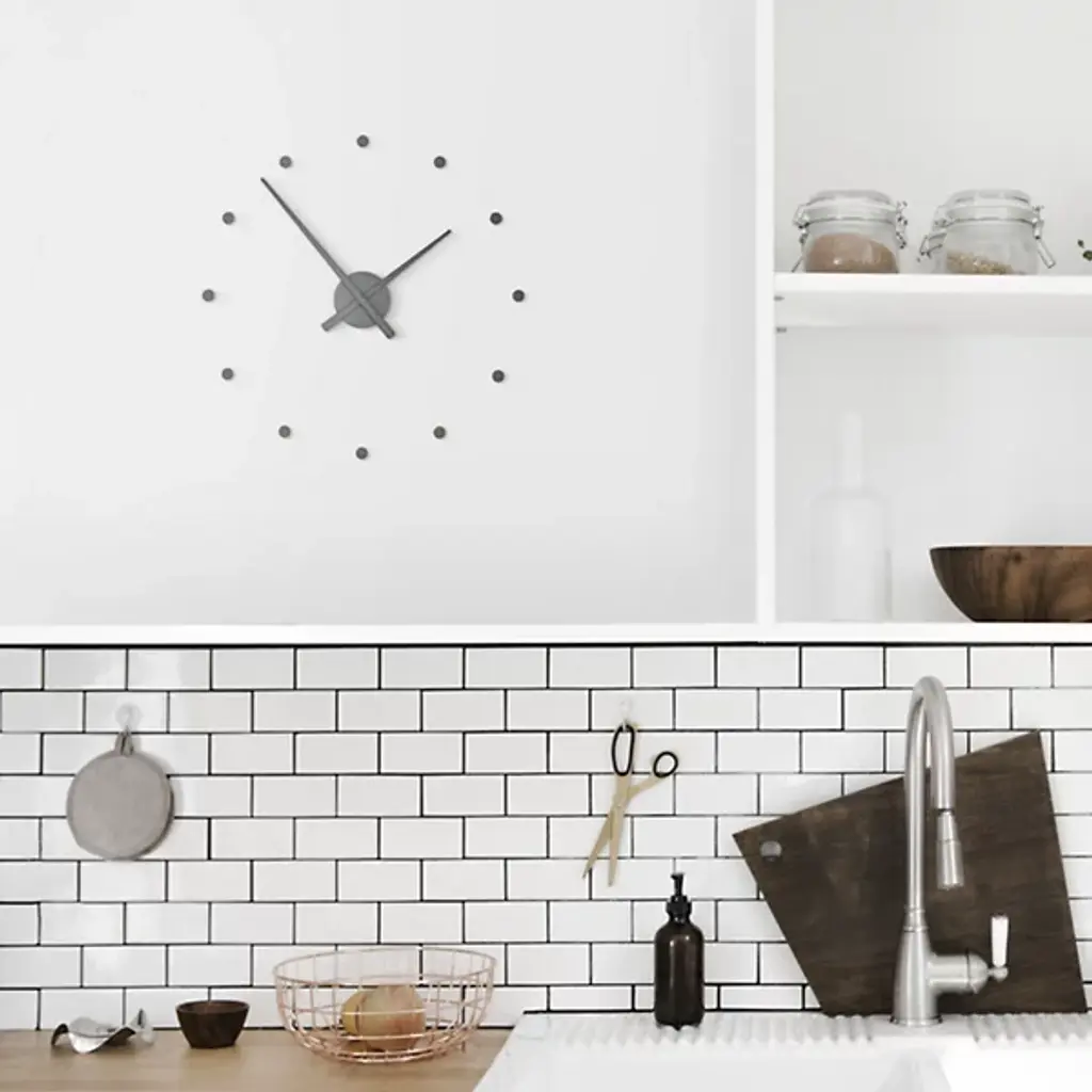 The definition of minimal design. The OJ Wall Clock from Nomon is a beautiful wall décor piece that also serves as a stunning clock. Features a simplistic design of dotted time signals made of polystyrene that are offered in a variety of vivid colors to suite your design taste.
