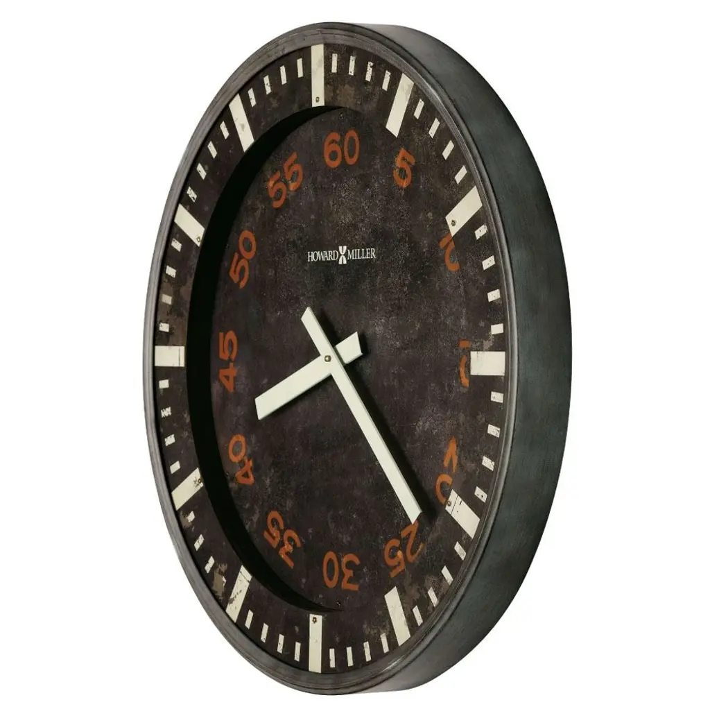 Old School Gallery Wall Clock. Like a relic from another era, this oversized wall clock is destined to be the focal point of any room. With its dark color palette and distinctive styling, it fits beautifully into nearly any space, whether it's a home office, the workplace, or a study. Aged features capture an authentically old-world finish, making the clock particularly appealing to anyone with an appreciation for decades past. Fully assembled. Batteries are extra. Manufacturer: Howard Miller.