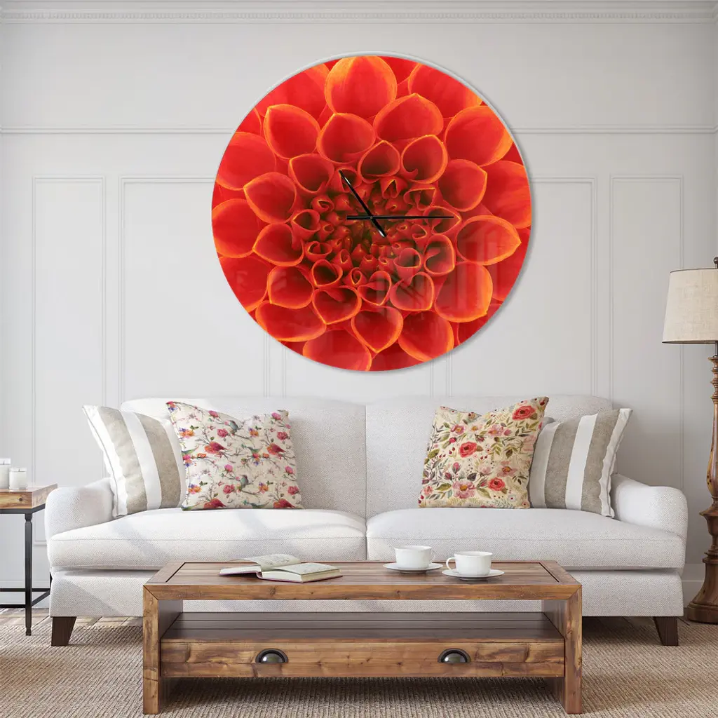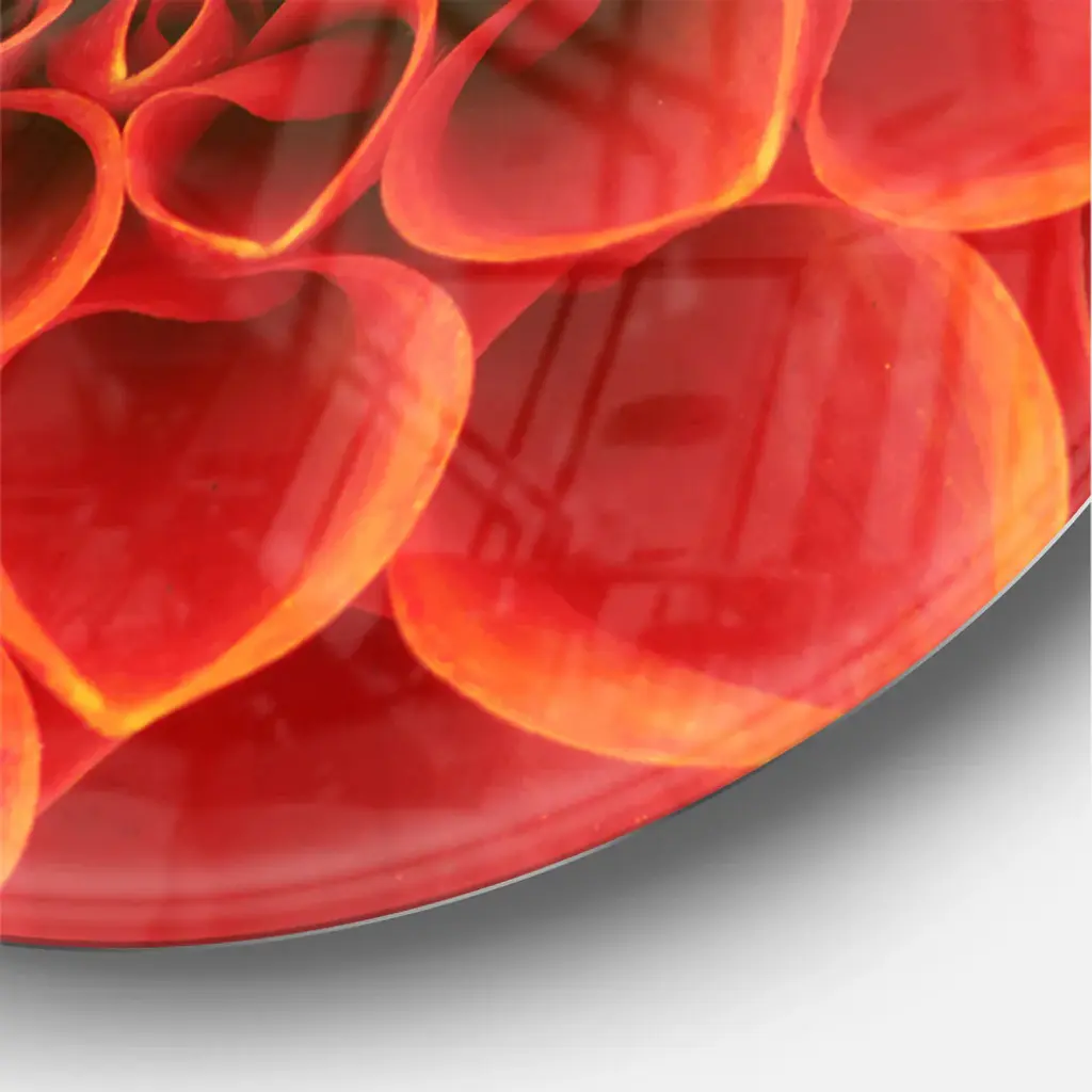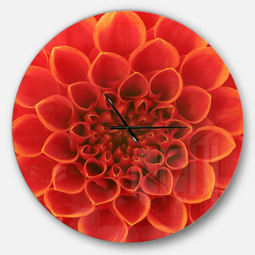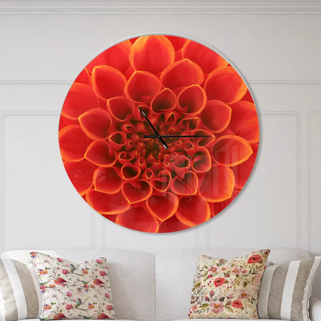 A beautiful addition to any home or office, this Modern & Contemporary round wall clock is made on 100% solid aluminum. It has a highly reflective glossy finish creating a sleek modern look. This Orange Abstract Flower Petals wall clock arrives completely ready to hang on the wall. Simply insert the �AAA� battery included with your order.Available in several size, this Modern Oversized Clock makes it the focal point of any room.Features - Ultra Gloss Coating ensures colors are extra vibrant with light reflection. - 1mm Aluminum grade sheet metal. - 1-inch mounting frame gives the illusion of artwork floating on the wall. - Mounting brackets and instructions are included. - High quality digital images are created directly into a glossy aluminum panel, producing a stunning and captivating print in the glossy finish of the metal. - Looks better than any photo paper and guaranteed to last at least 20 years. - Easy to clean with a microfiber cloth. - "AAA" battery included with your order. - Easy to hang. - Style: Modern & Contemporary - Material: Metal - Shape: RoundSee Options drop down for available sizes.