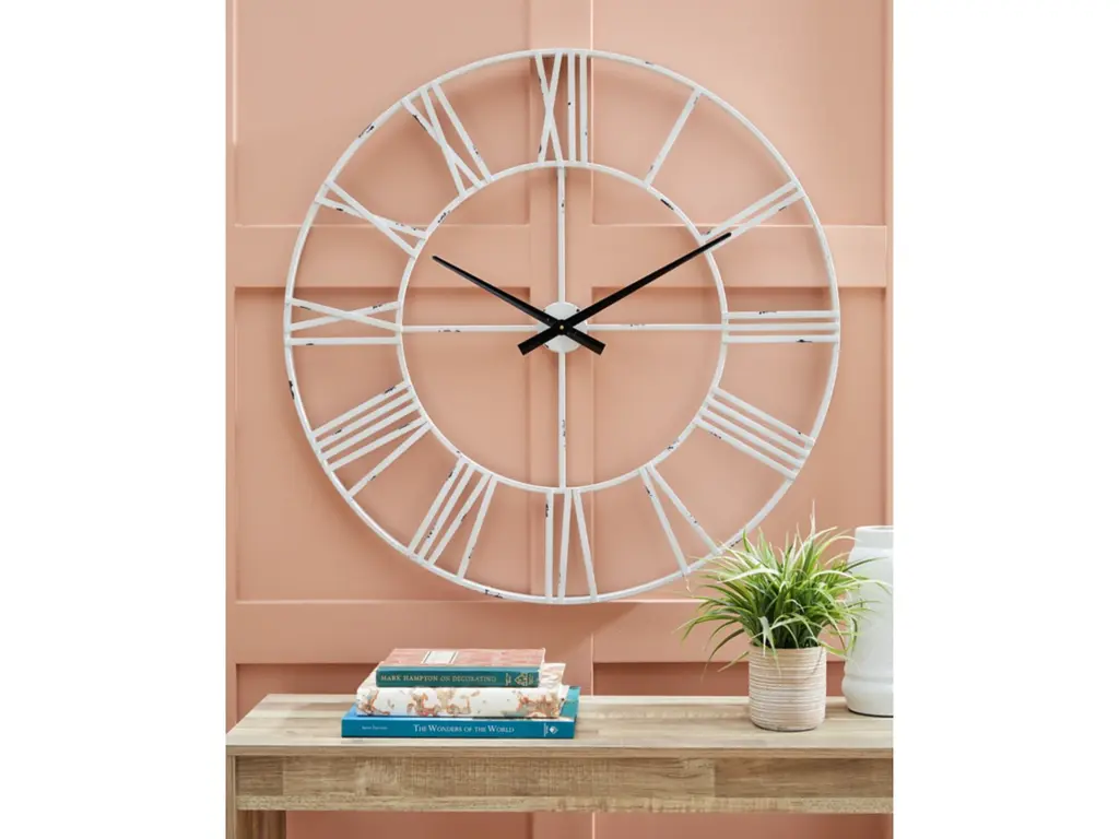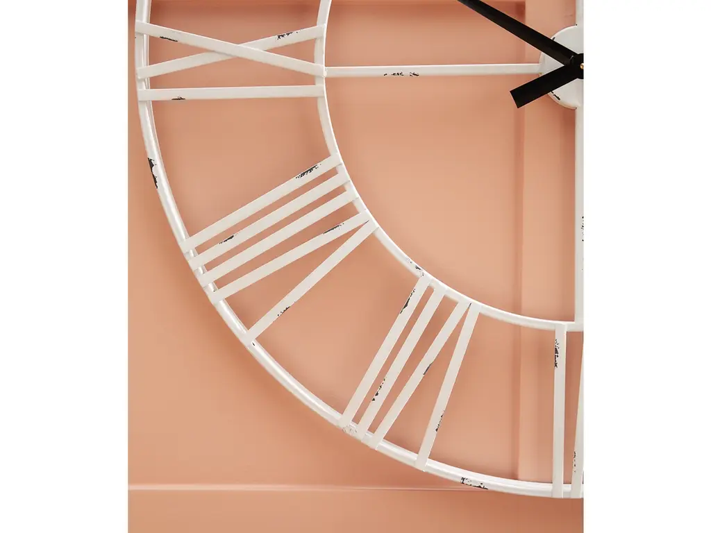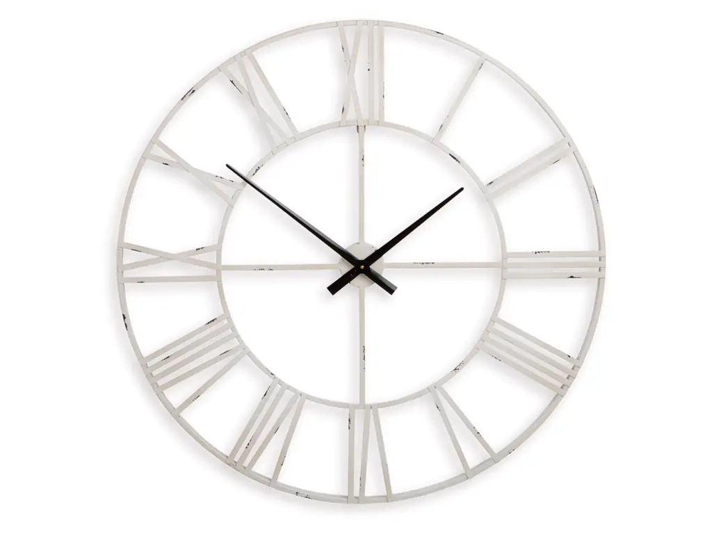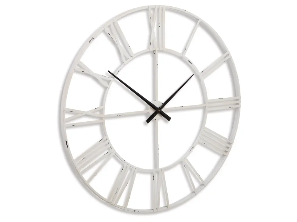 Casual style meets practical function with this Paquita wall clock. Roman numerals are easy to read on the sleek metal frame in an antiqued white finish. Keeping track of time has never been so stylish.