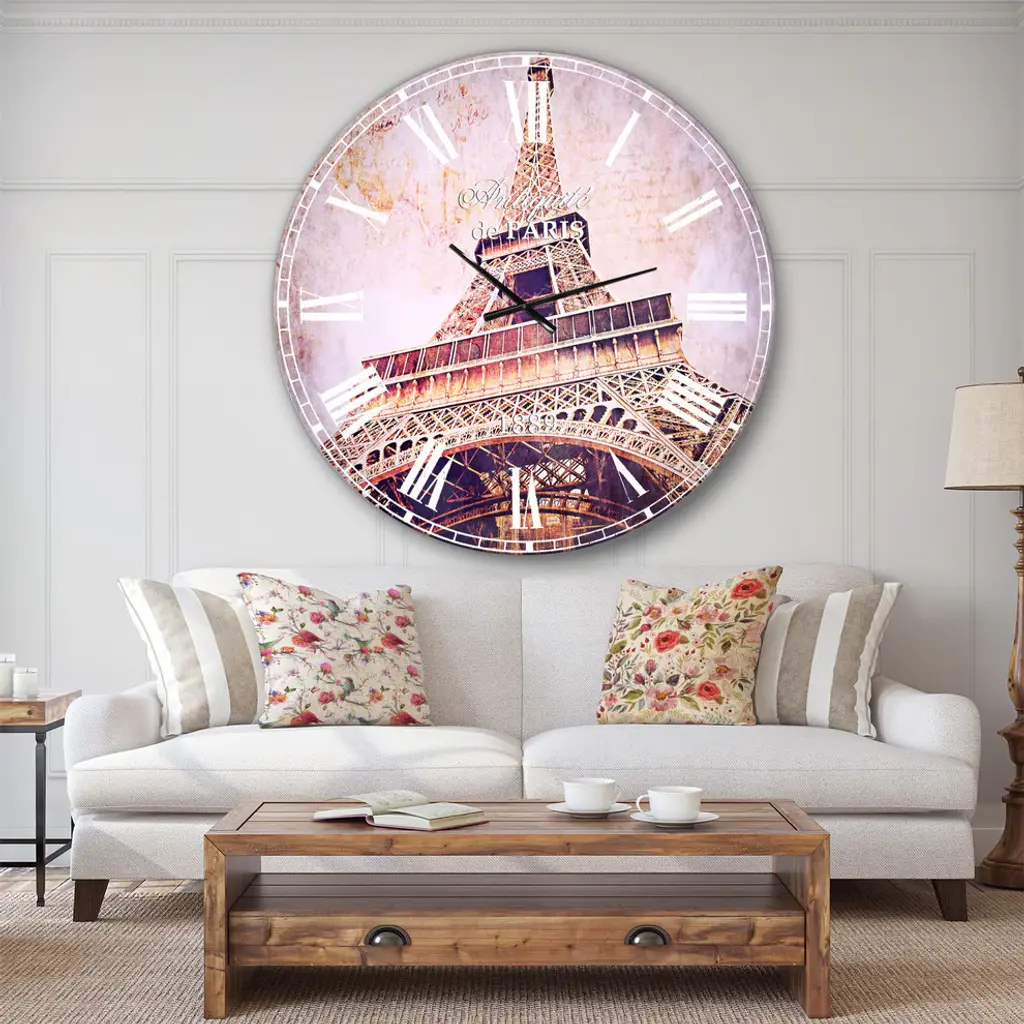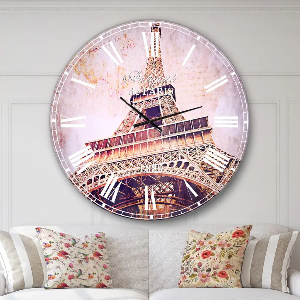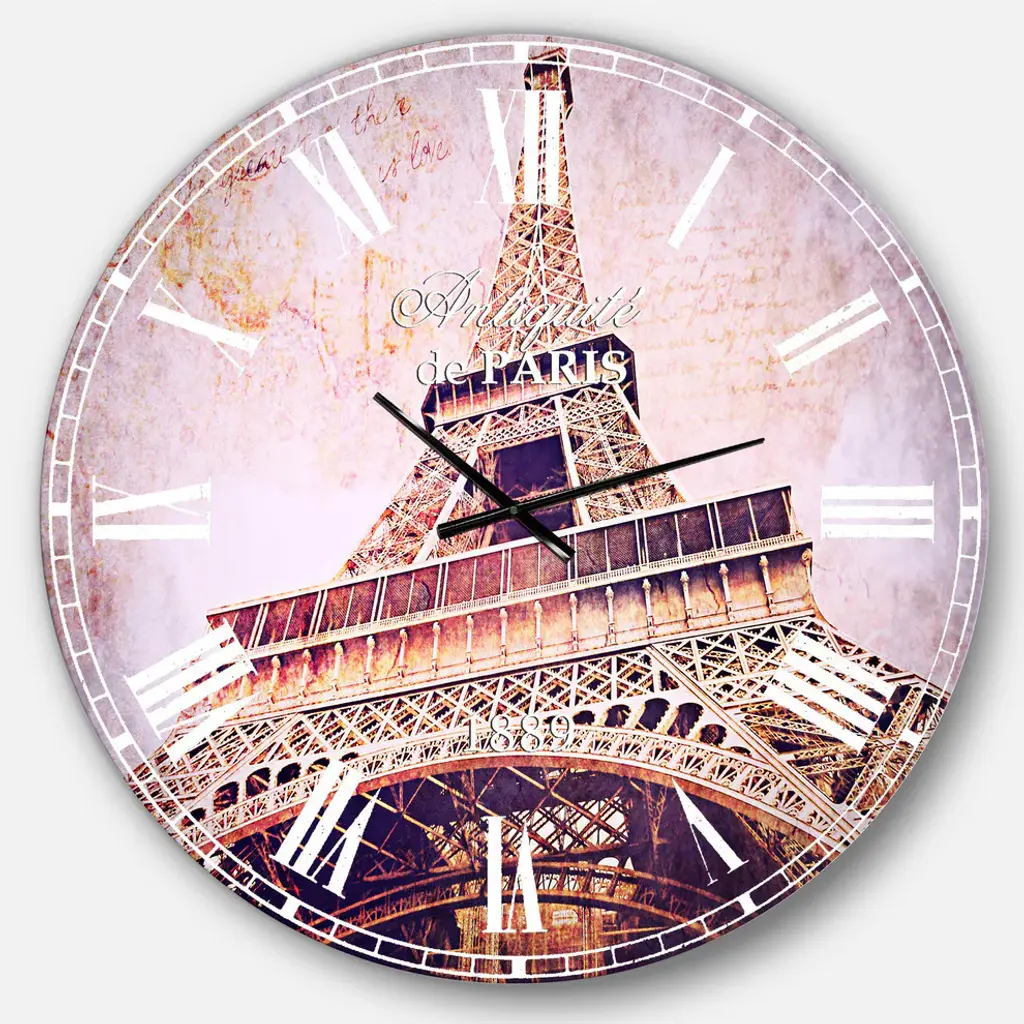 Paris Paris Eiffel Towerparis Postcard Design Metal Clock, 36x36