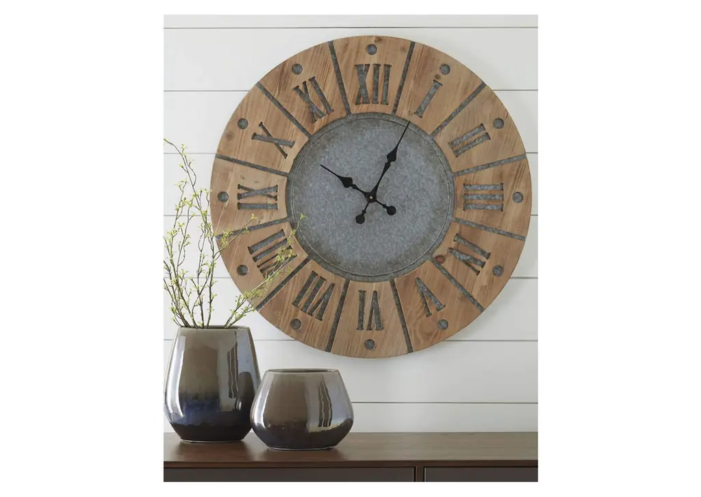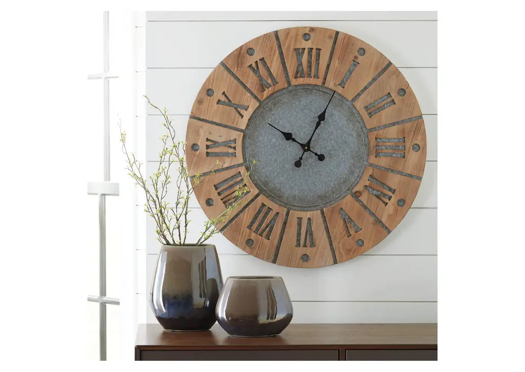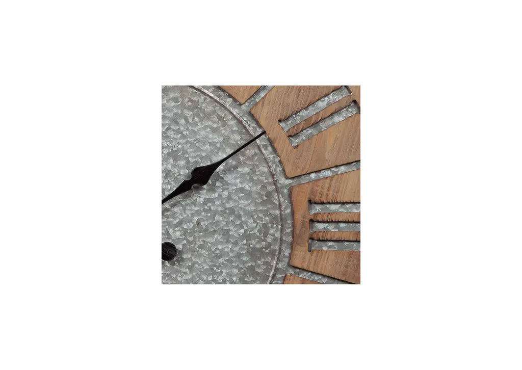 The Payson wall clock is on time with industrial farmhouse style. Natural wood pairs beautifully with galvanized metal to create its large Roman numerals and sun design. The clock’s ample scale makes it a gorgeous focal piece for your wall. Weight 13.000 lbs. (5.85kgs.)
