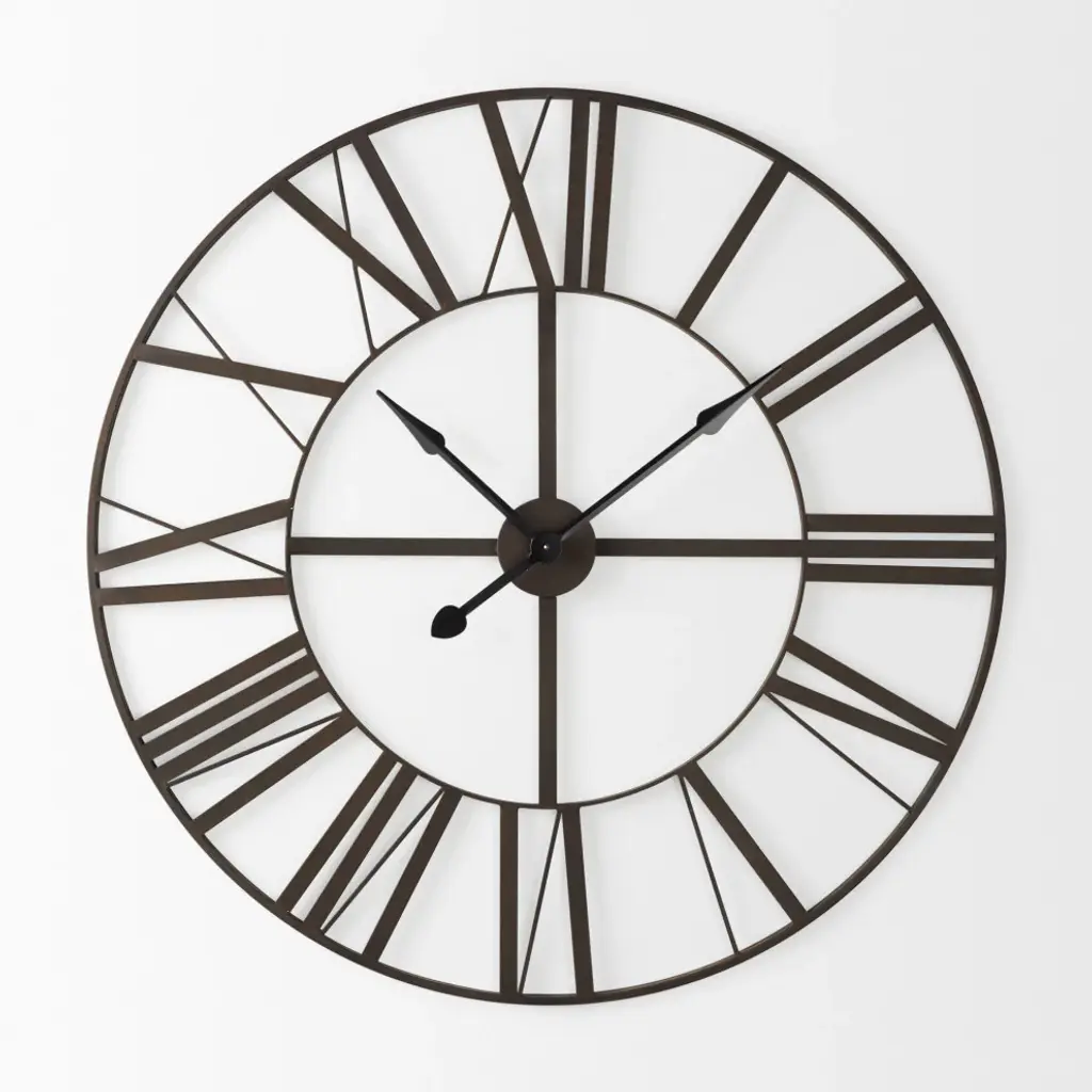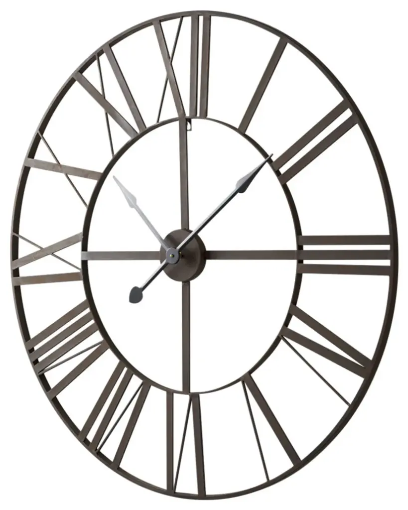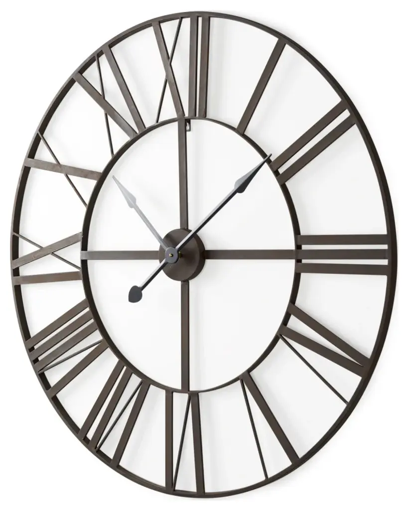 Pender is a 40" round wall clock made from solid iron and finished in an unfussy matte black color.Pender''s DimensionsThe Pender wall clock measures 40.0L x 2.4W x 40.0H. Solid Iron ConstructionThis classic style wall clock features an open design with large, cut-out Roman Numerals encircled by a solid iron frame. The Roman Numerals are constructed from iron, as is the round center dial with spade style hands. Black FinishThe iron is smooth textured, and feature an unfussy, matte black finish. Perfectly PairedGot a large wall to fill? This piece makes a striking statement when paired with others in the Pender series. Farmhouse Inspired DesignThe Pender is a beautiful combination of classic elements and modern style - perfect for farmhouse living!