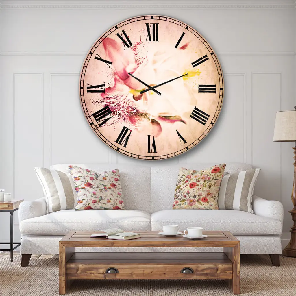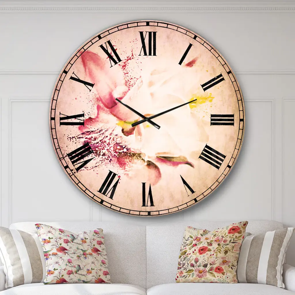 Pink Rose Watercolor Illustration Floral Round Wall Clock, 36x36