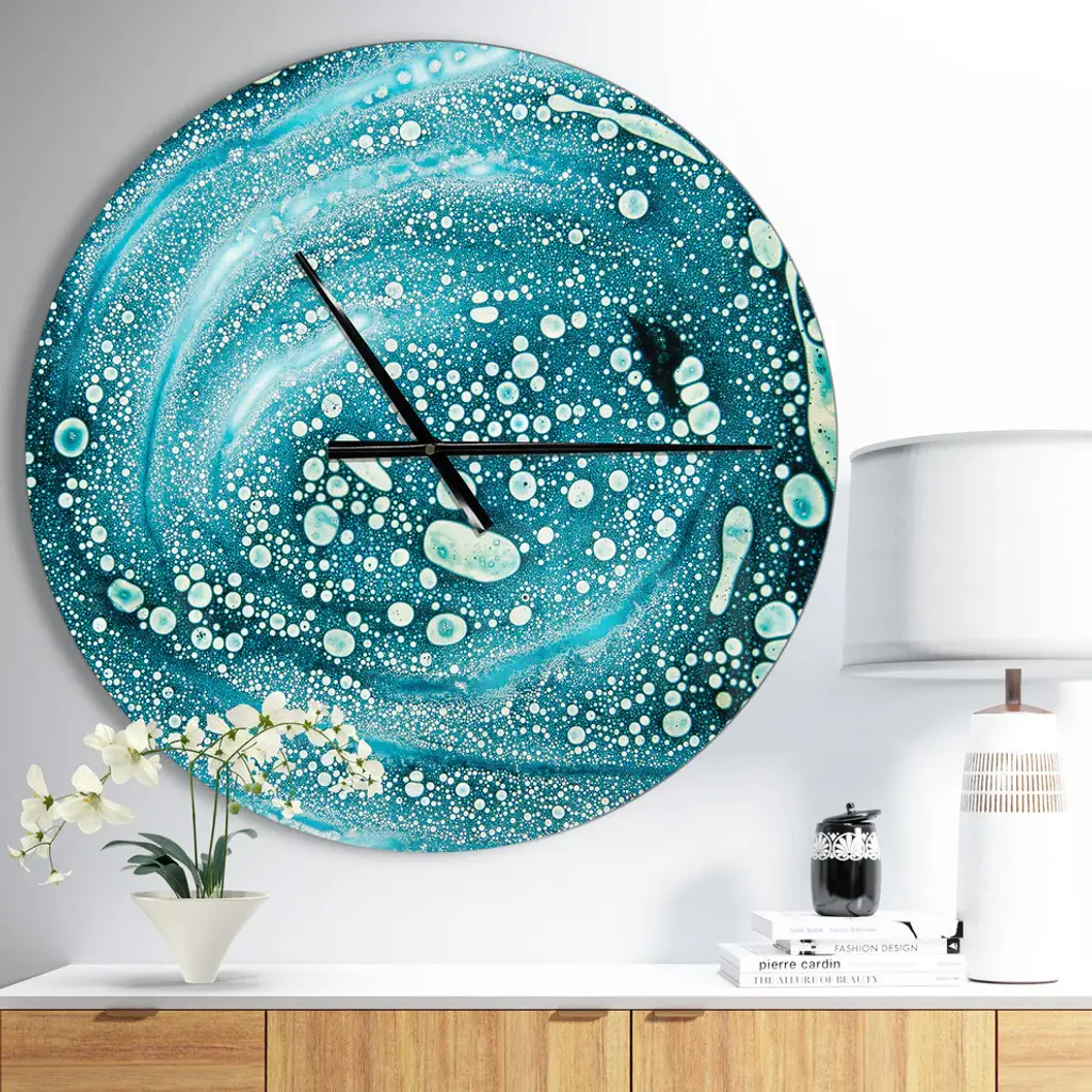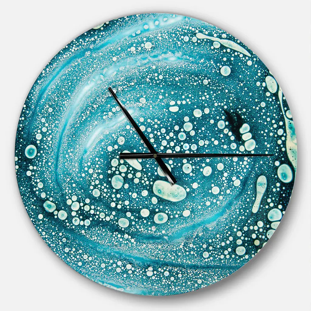 A beautiful addition to any home or office, this Modern & Contemporary round wall clock is made on 100% solid aluminum. It has a highly reflective glossy finish creating a sleek modern look. This Precious Blue Fabulous Pattern wall clock arrives completely ready to hang on the wall. Simply insert the �AAA� battery included with your order.Available in several size, this Modern Oversized Clock makes it the focal point of any room.Features - Ultra Gloss Coating ensures colors are extra vibrant with light reflection. - 1mm Aluminum grade sheet metal. - 1-inch mounting frame gives the illusion of artwork floating on the wall. - Mounting brackets and instructions are included. - High quality digital images are created directly into a glossy aluminum panel, producing a stunning and captivating print in the glossy finish of the metal. - Looks better than any photo paper and guaranteed to last at least 20 years. - Easy to clean with a microfiber cloth. - "AAA" battery included with your order. - Easy to hang. - Style: Modern & Contemporary - Material: Metal - Shape: RoundSee Options drop down for available sizes.