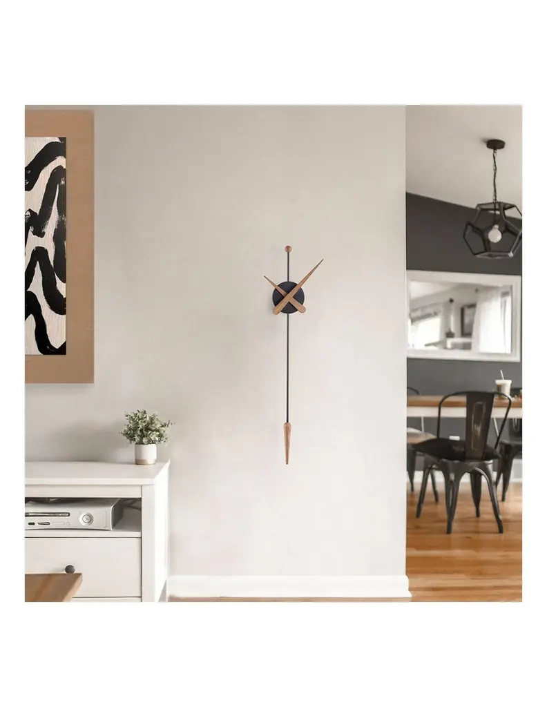 A modern wall clock with an avant-garde design and a lot of character, reinterpreting the traditional pendulum clock.Each clock is a unique handmade piece.Material: Wood and Fiberglass. Warranty: Limited 2 Year.California Residents: Prop 65 regulations.
