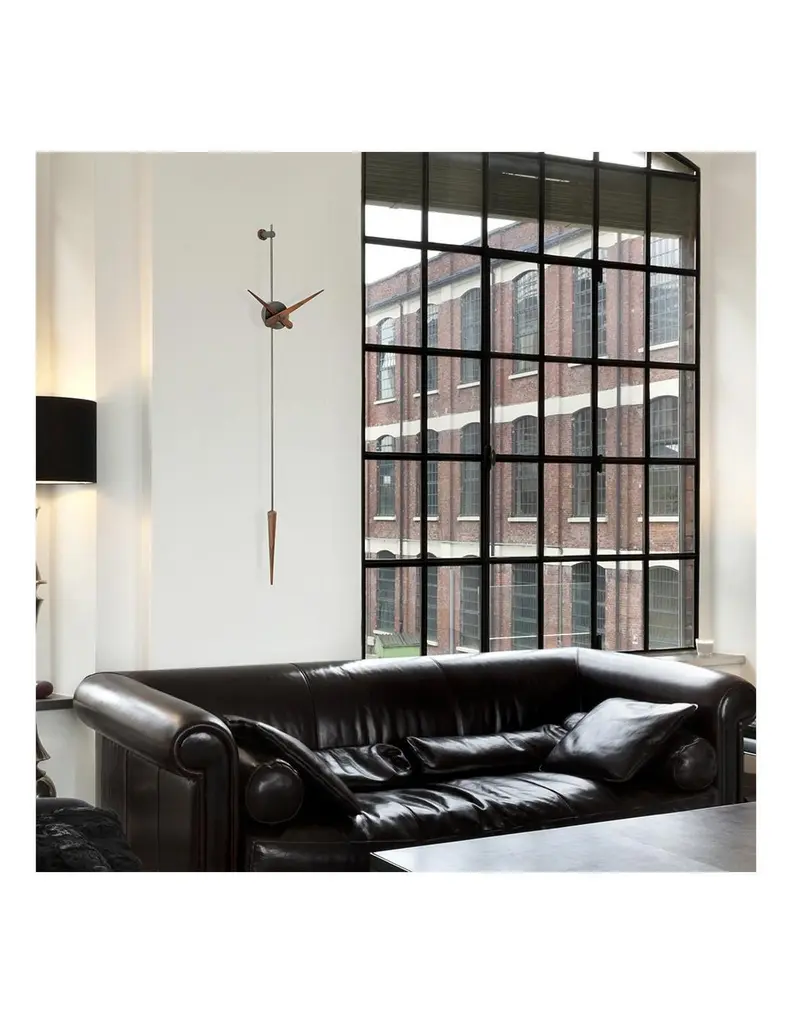 Elegant modern sophisticated glossy glamorous are adjectives that describe this wonderful graphite-finished pendulum clock with the hands in walnut noble wood.Punto Y Coma T clock: Wood and BrassEach clock is a unique handmade pieceCalifornia Residents: Prop 65 regulations.