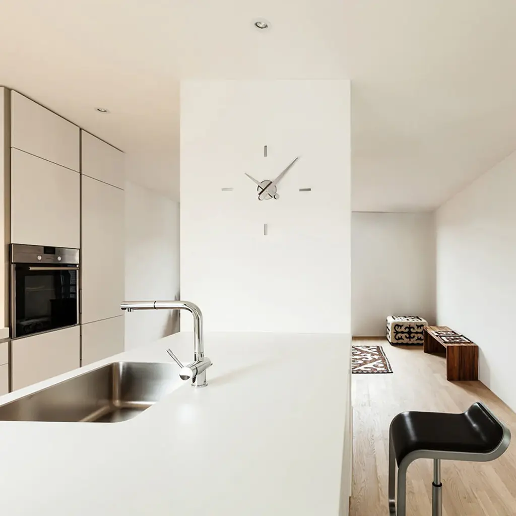 A bold-face take on wall-mounted timekeeping, Nomon’s graphic Puntos Suspensivos features hands and time markers—with a choice of 4 or 12 elements—in polished steel or painted signal colors. Carefully handcrafted in Spain, the wall clock particularly adds dash to a kitchen and is precision-powered by German quartz works.