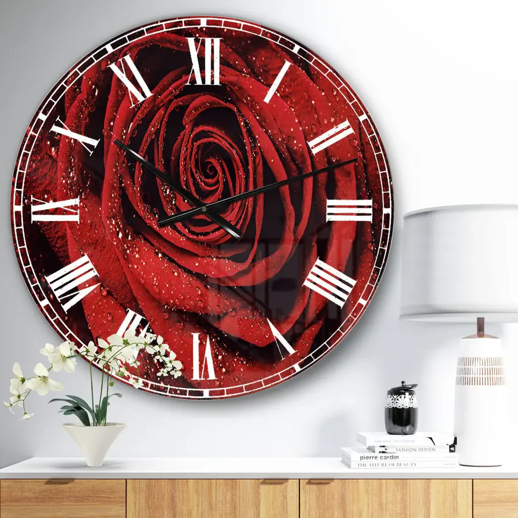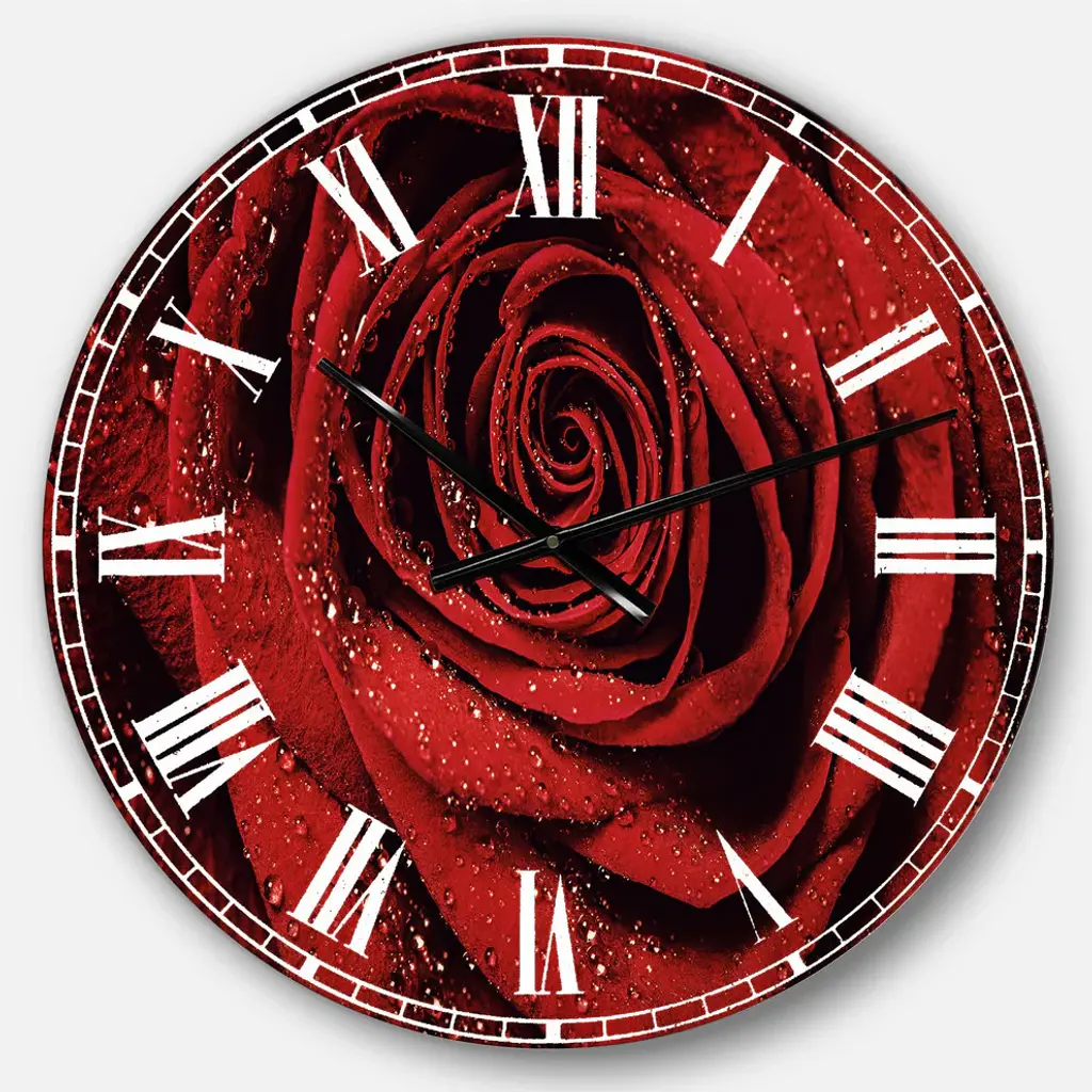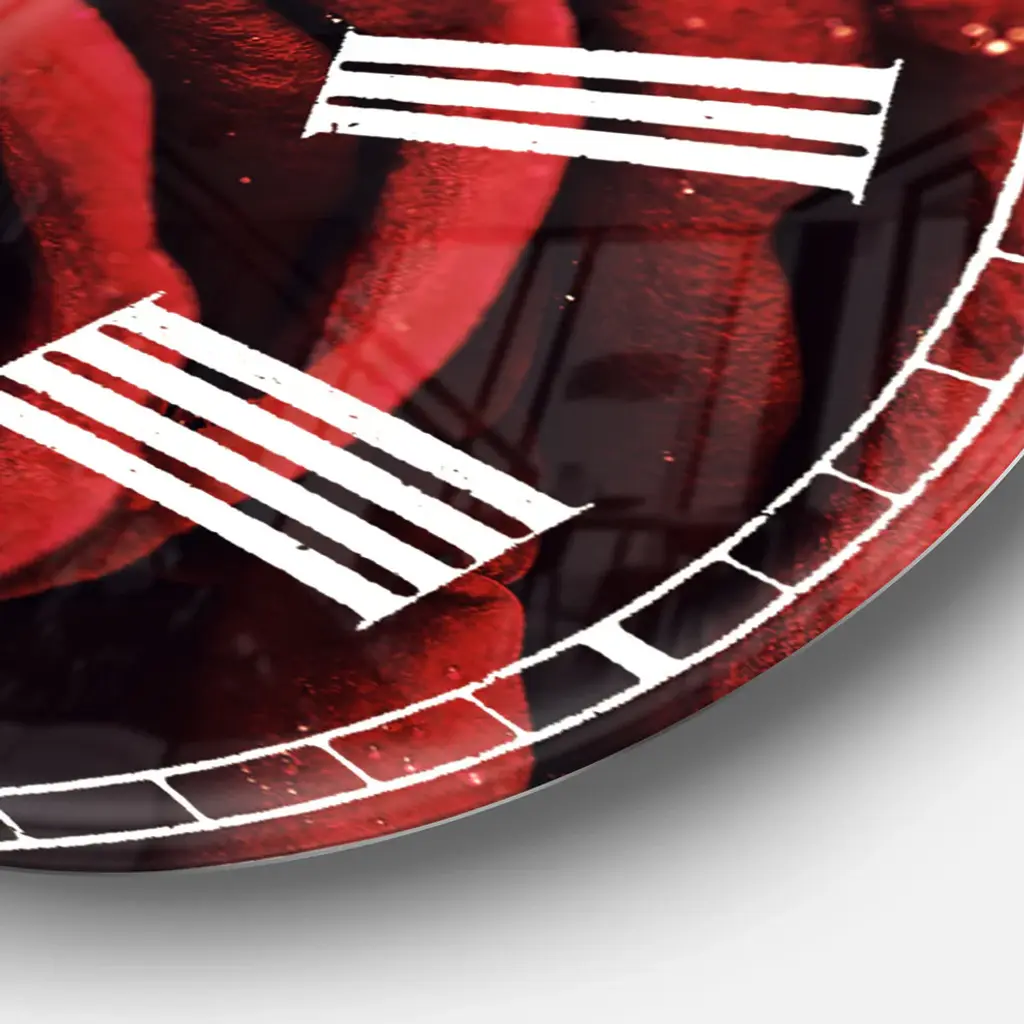 Red Rose Petals With Rain Droplets Oversized Floral Metal Clock, 23x23