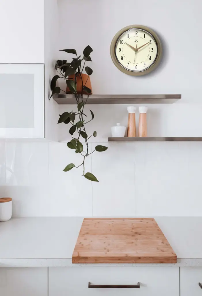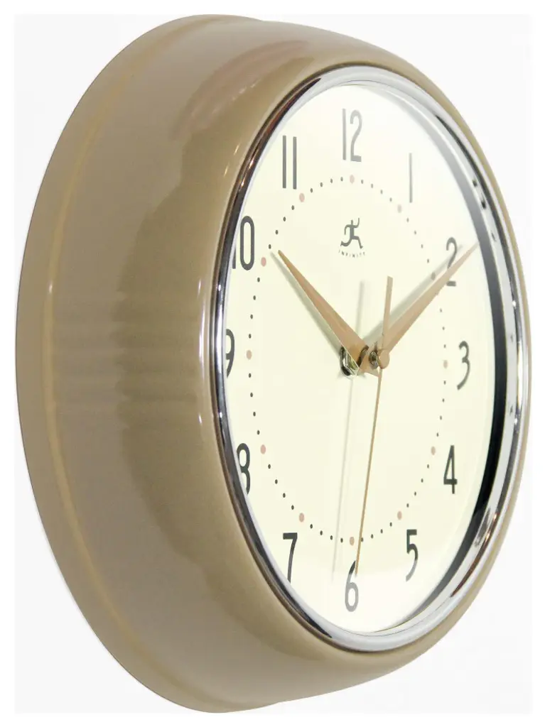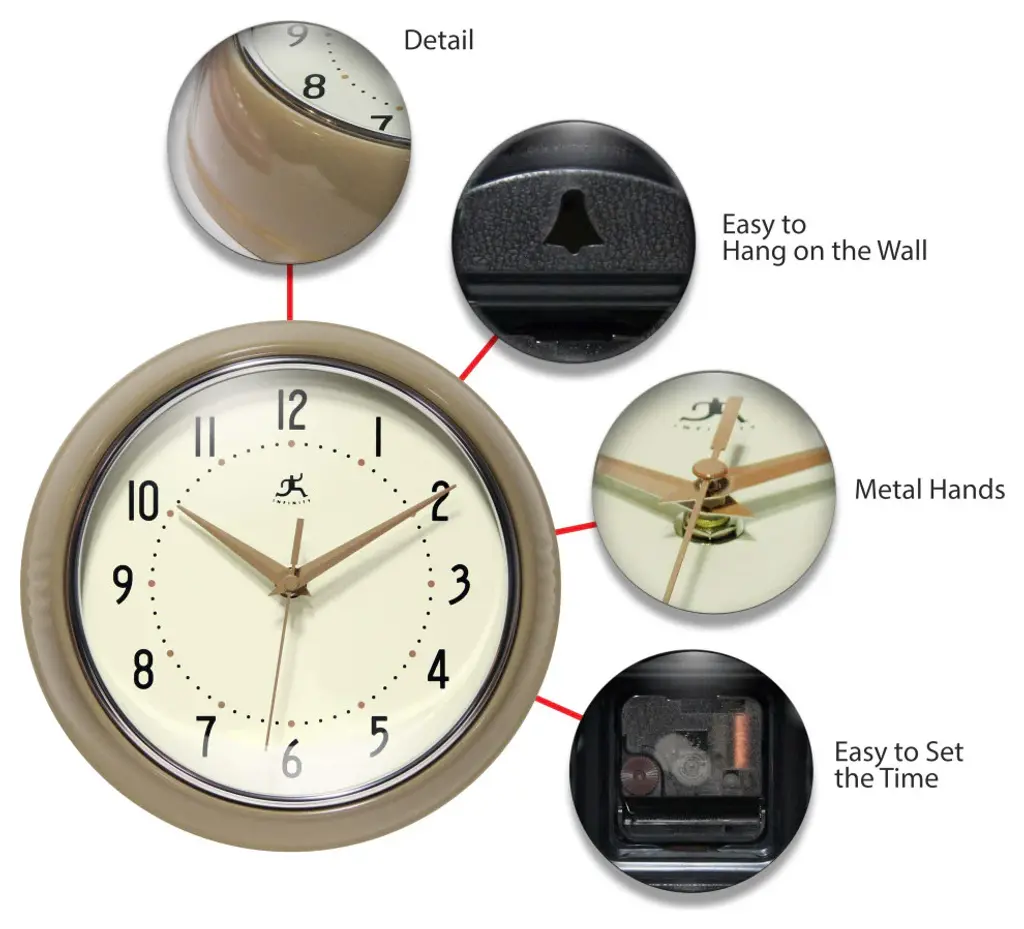 The Retro Round Latte Wall Clock''s stunning champagne gold frame and unique retro design sets it apart from the rest. Infinity Instruments Retro Wall Clock collection has been a staple in the interior design/ wall decor accessories for well over a decade. It has proven the test of time with a clean retro look that fits most, if not all, home decor layouts. There have been many copy-cats but there is only one true Retro Aluminum Wall Clock.