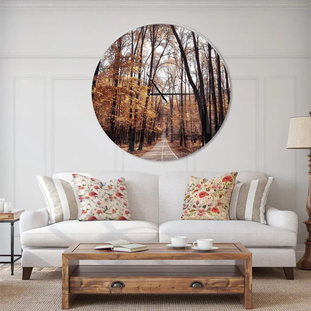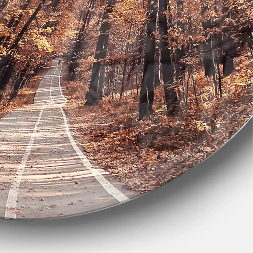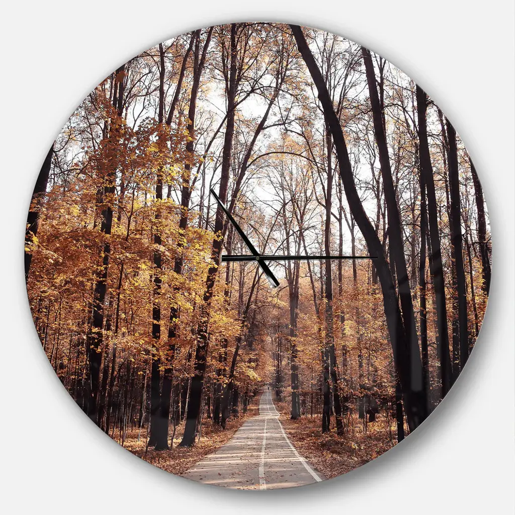 Road In Autumn Golden Forest Oversized Traditional Metal Clock, 36x36
