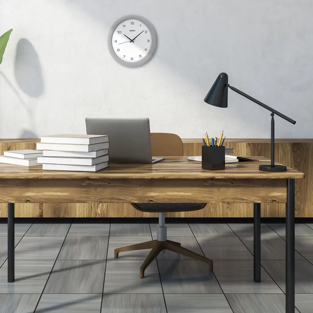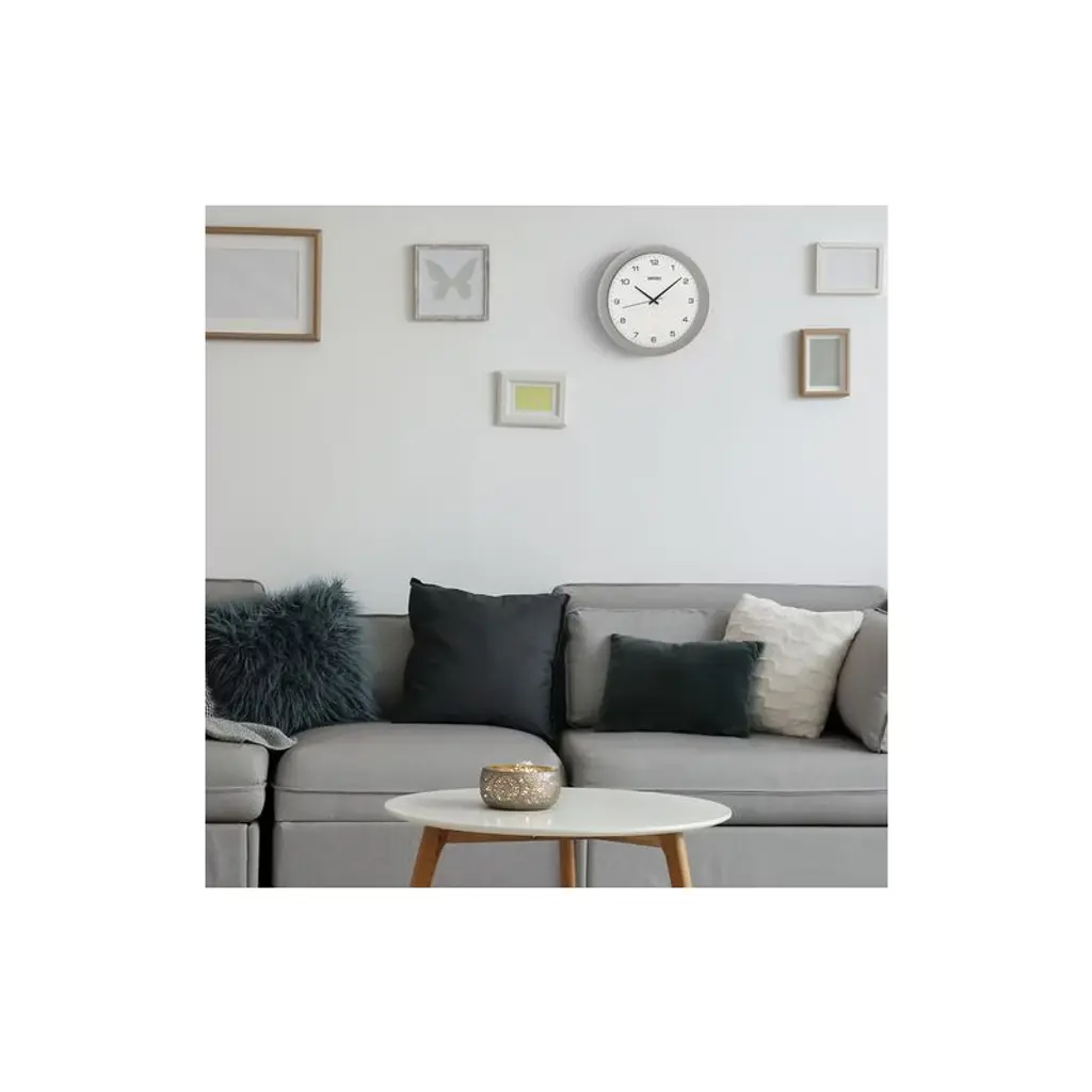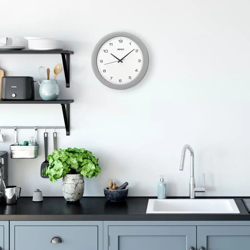 Seiko Sterling Wall Clock is all about stylish timekeeping. With a brushed silver plastic frame, this round wall clock pops with a white face and black details. Ideal for your home kitchen, office, or classroom, and this contemporary clock features precise quartz movement. Powered by 1 AA battery (included). Overall dimensions: 11.75 X 11.75 X 1.5 inches. All Seiko clocks are equipped with quartz movement making it the most accurate at time keeping.