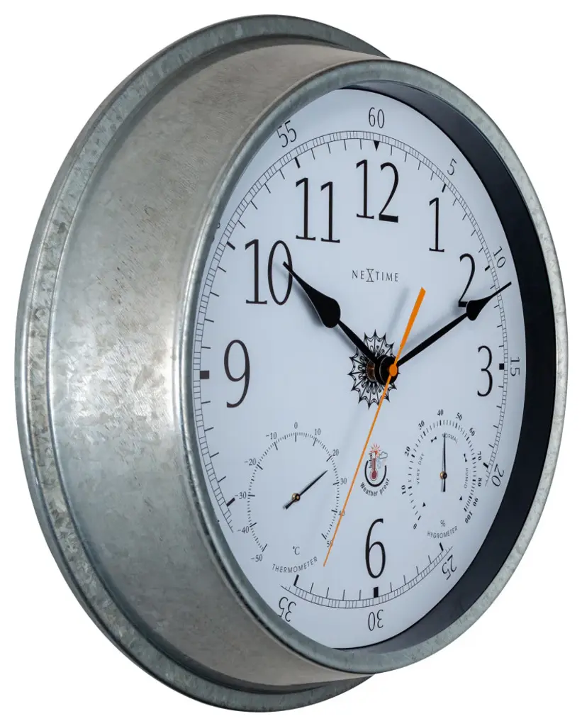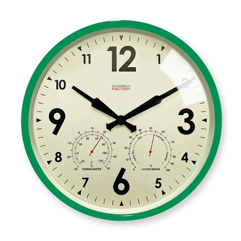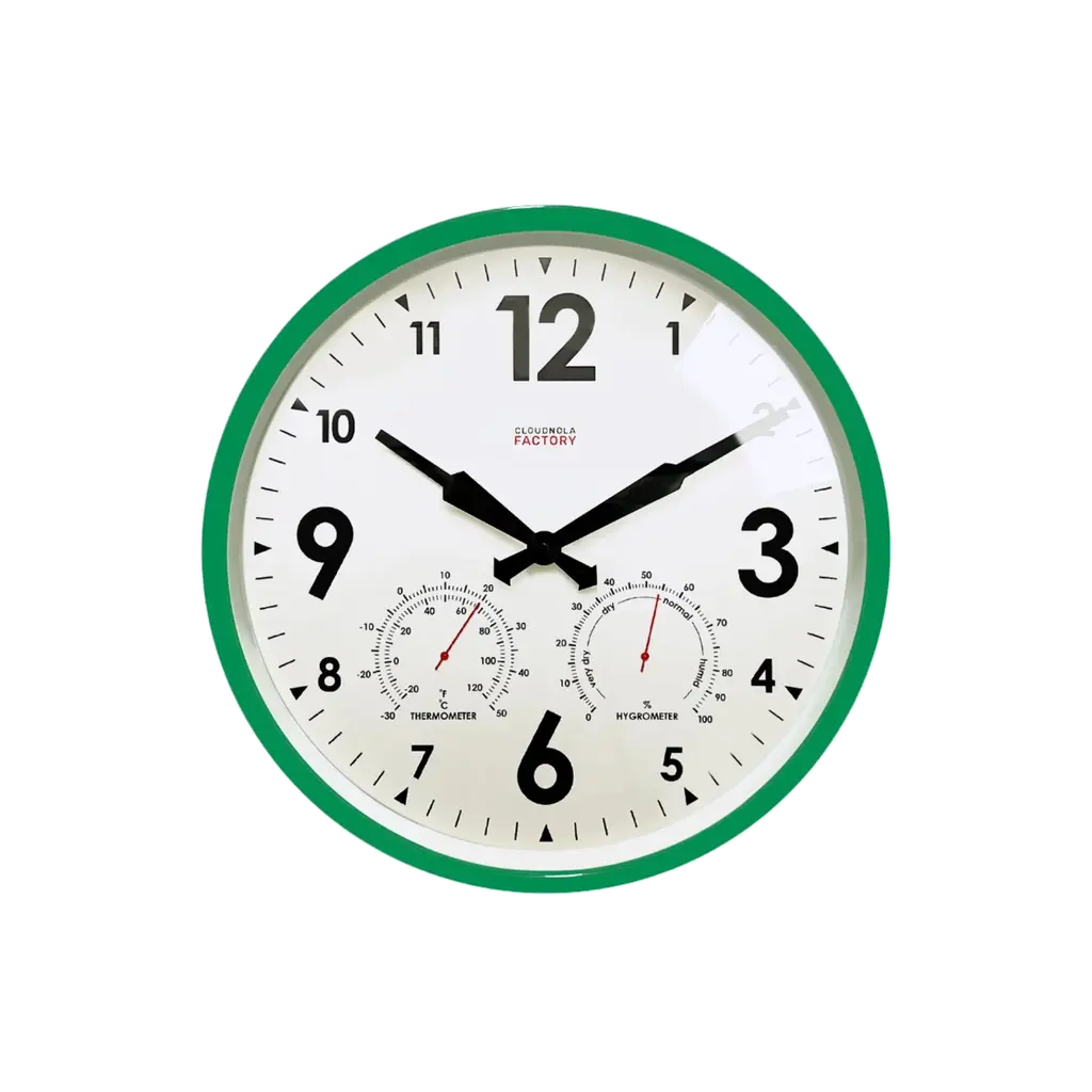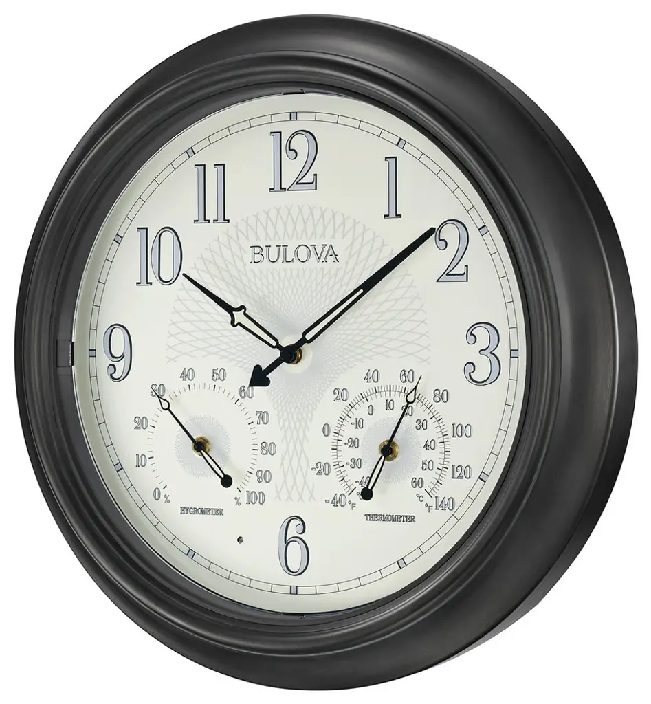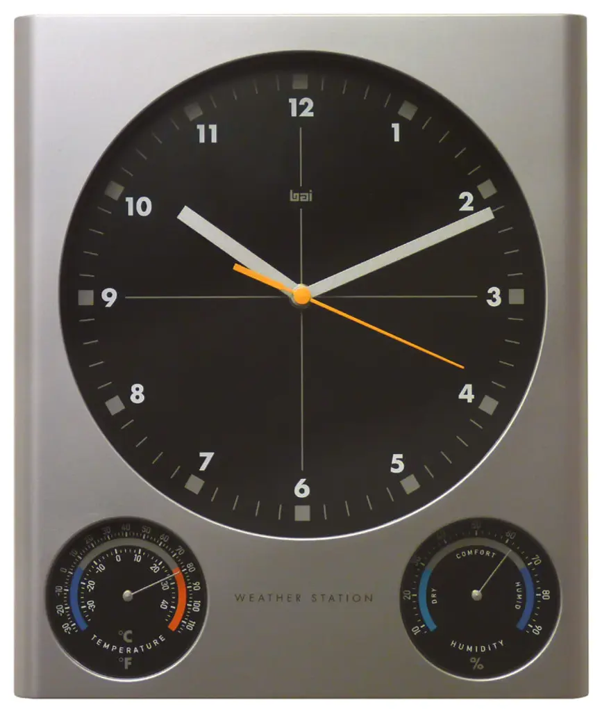 Elevate your space with the Heritage Design, Shelby Wall Clock from Seiko. This analog round wall clock features sporty colors of white, grey and black encompassed in a white aluminum case protected by a glass crystal face. The Lumibrite on the number indicators and hands allow you to tell the time, even in low light. This sporty clock features three precision-engineered inset dials that provide you with valuable information at a glance. A subtle yet captivating inset dial displays the seconds, reminding you that every moment counts. Stay informed about your environment with the temperature dial. Accurate and easy to read, it keep you up to date on the current conditions. Humidity levels can significantly impact your comfort and well-being. Our humidity dial ensures your're always aware of the moisture in the air, helping you create a more comfortable and healthy living space. Powered by 2 AA batteries, included. Overall dimensions: 12.99 X 12.99 X 1.93 inches. Quartz crystal movement allows for the most accurate time keeping. Perfect for tween to adult.