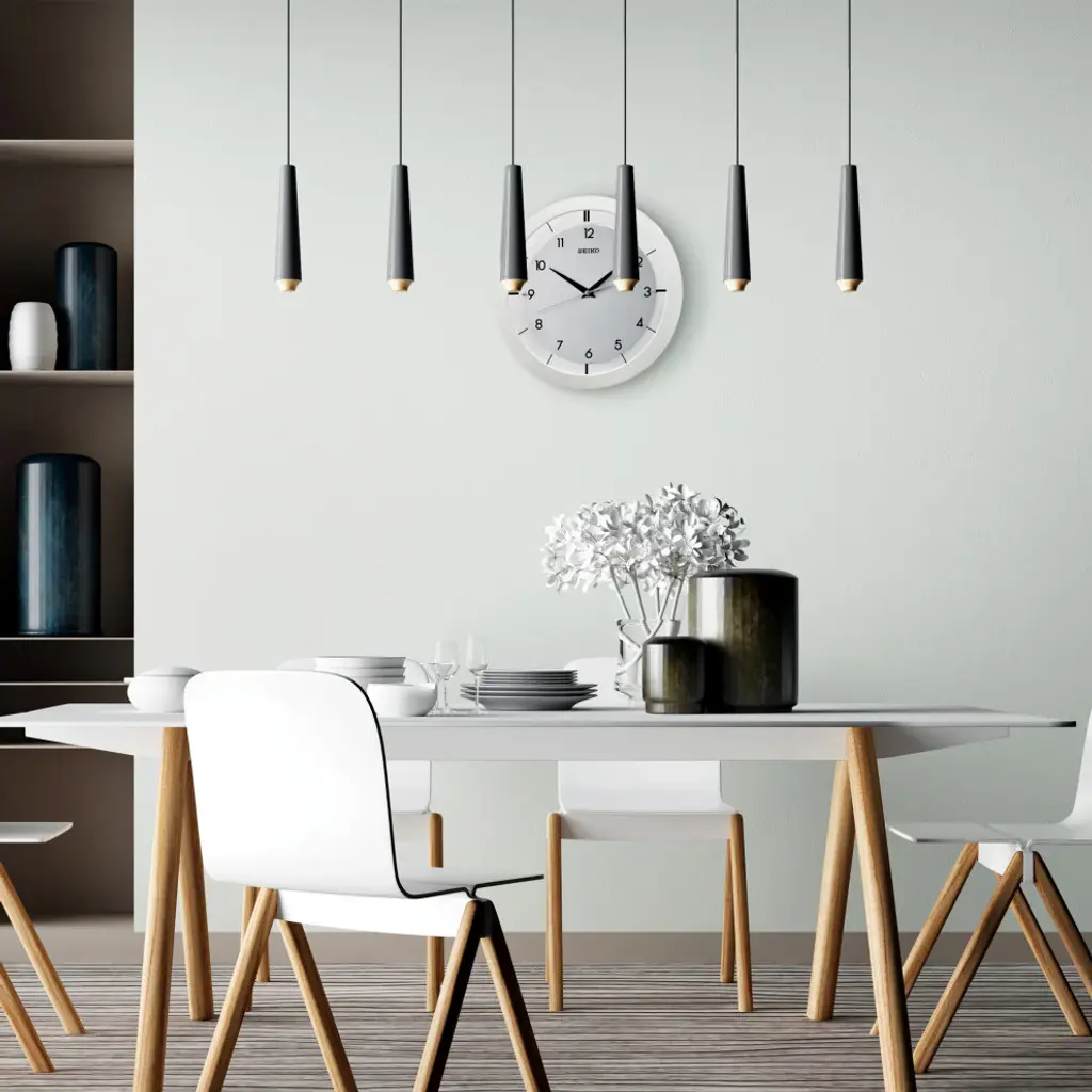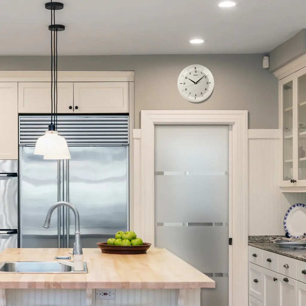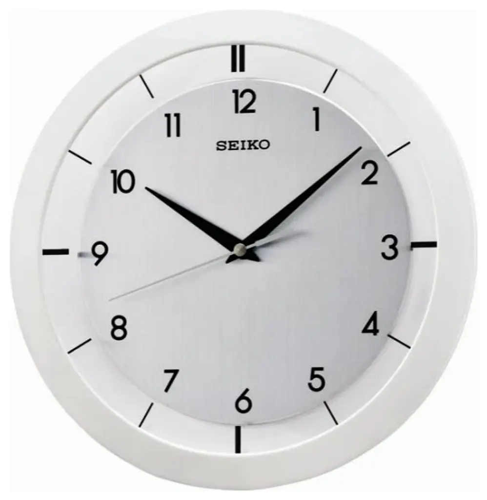 Seiko Clocks, 11" Brushed Metal Wall Clock, White
