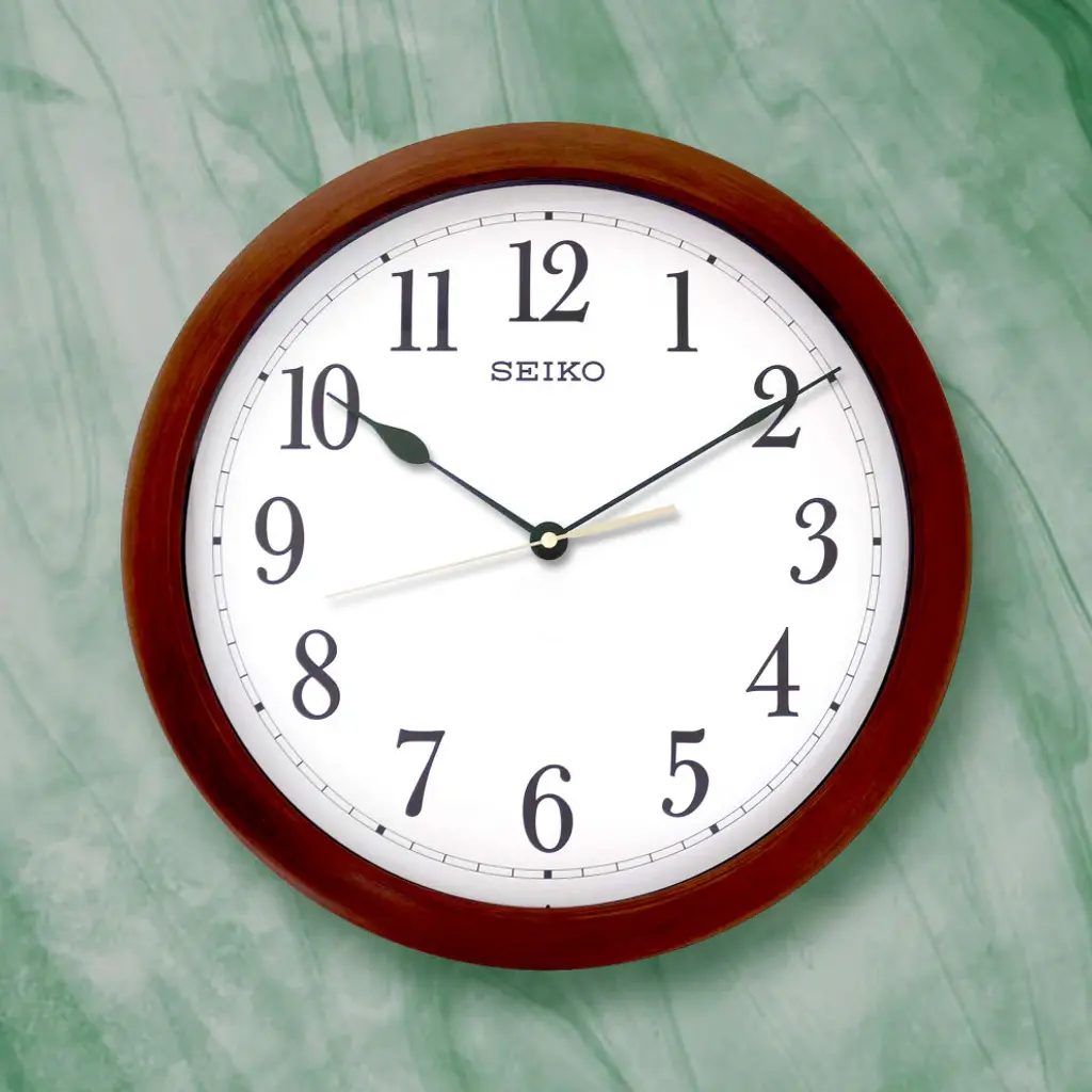 Seiko Clocks, 16" Numbered Wood Finish Wall Clock