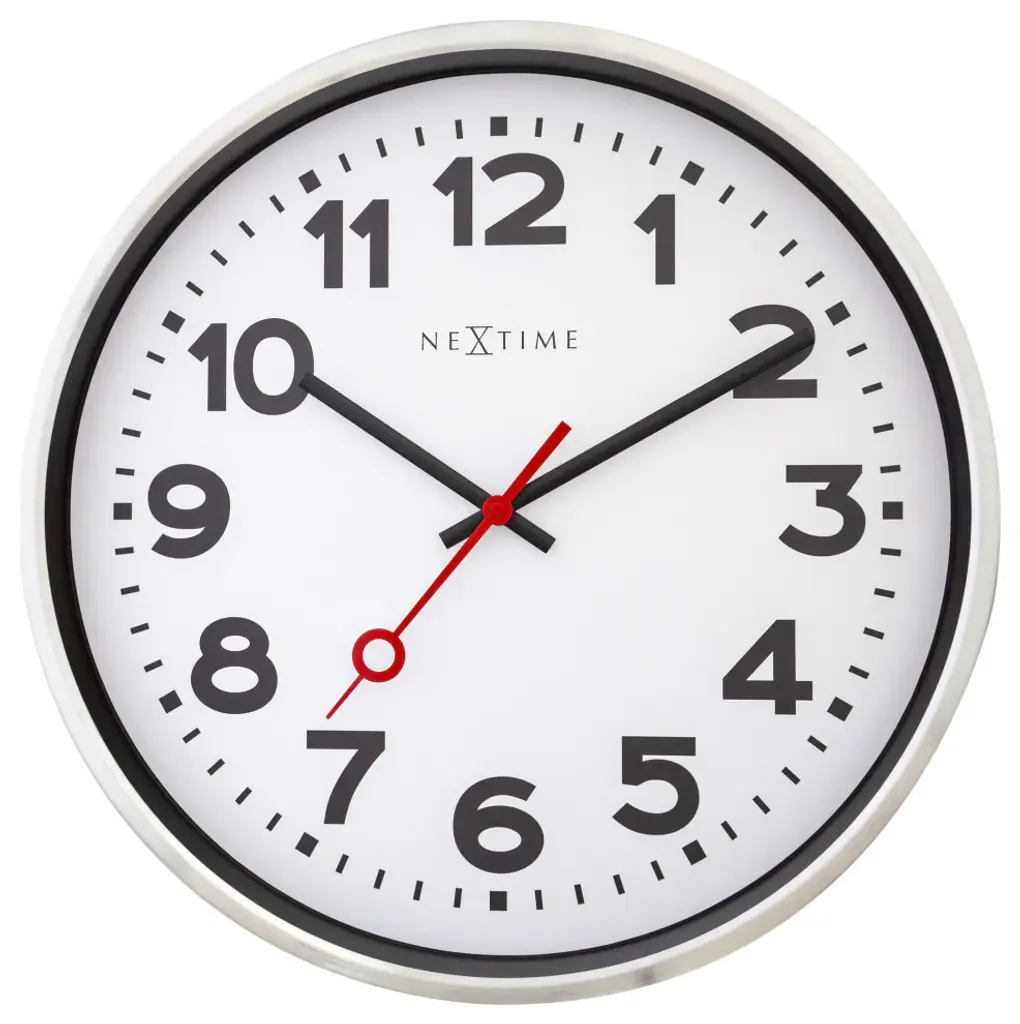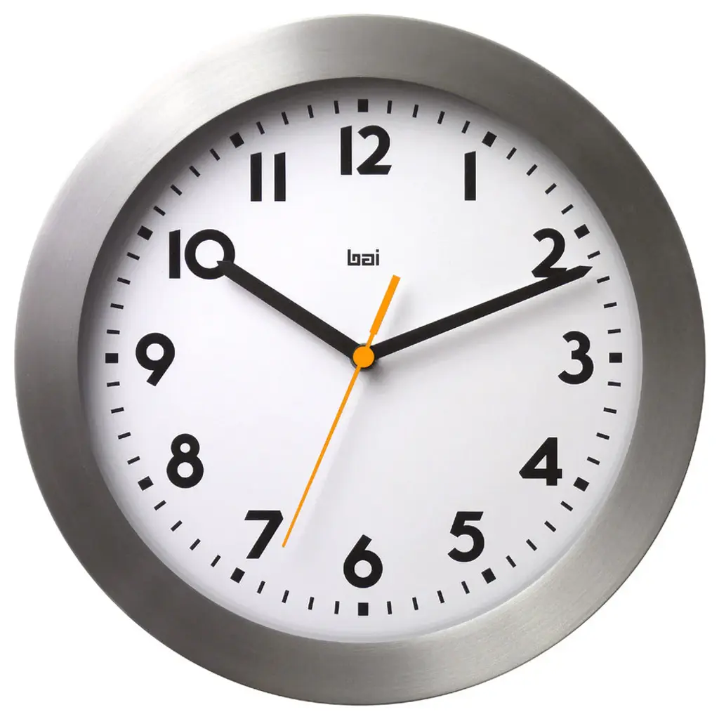 This round wall clock brings warmth and sophistication to the home as well as office space. Classically designed, it features a brown case with a wood grain finish, crystal glass, and a quiet sweep second hand.