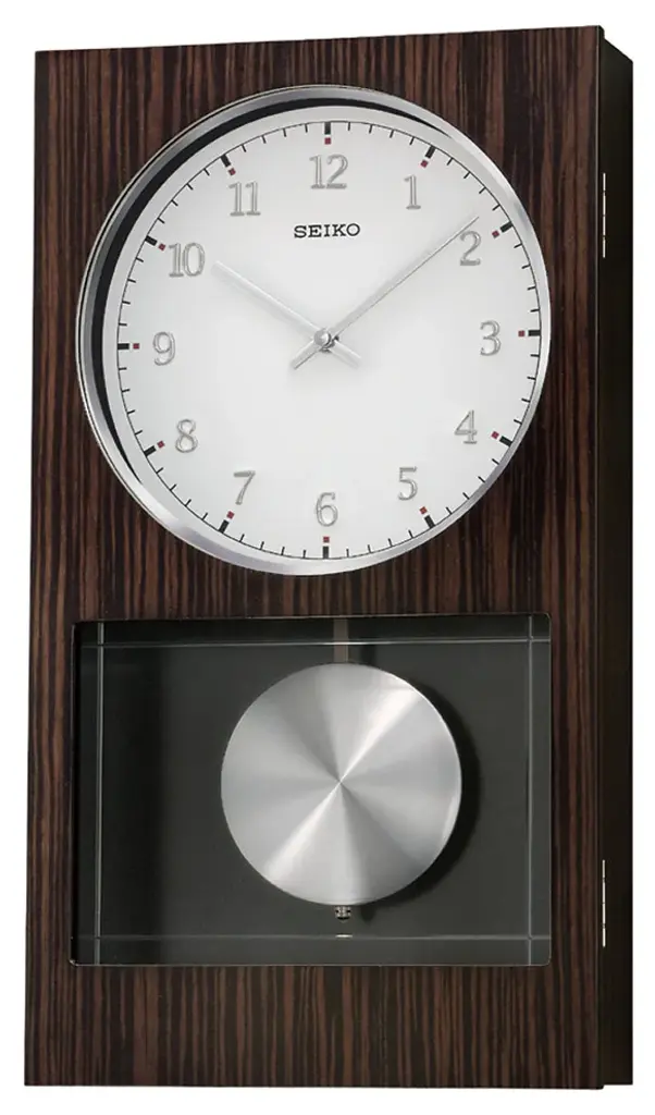 Seiko Clocks, Modern Dark Wooden Wall Clock With Pendulum And Dual Chimes