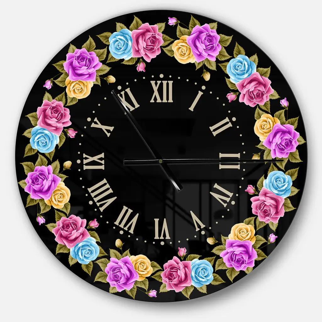 Shabby Chic Vintage Rose Oversized Farmhouse Metal Clock, 23x23