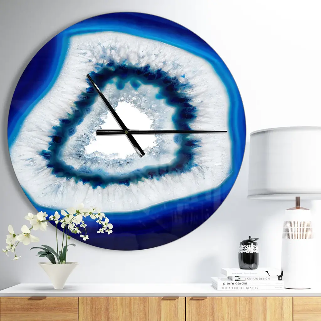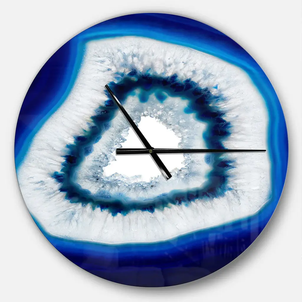 Slice Of Blue Agate Crystal Oversized Modern Metal Clock, 23"x23"