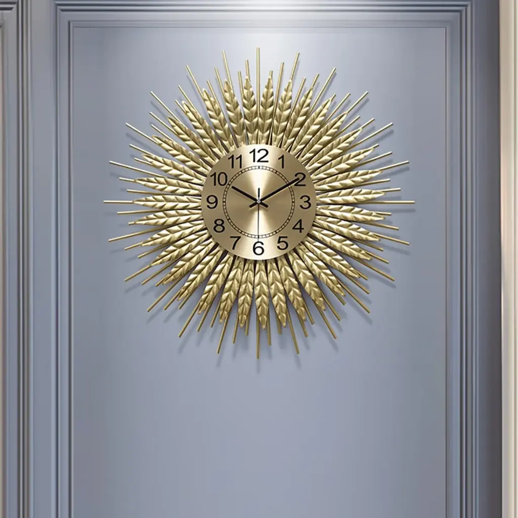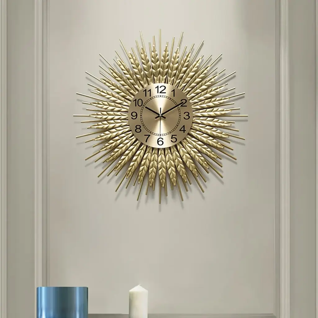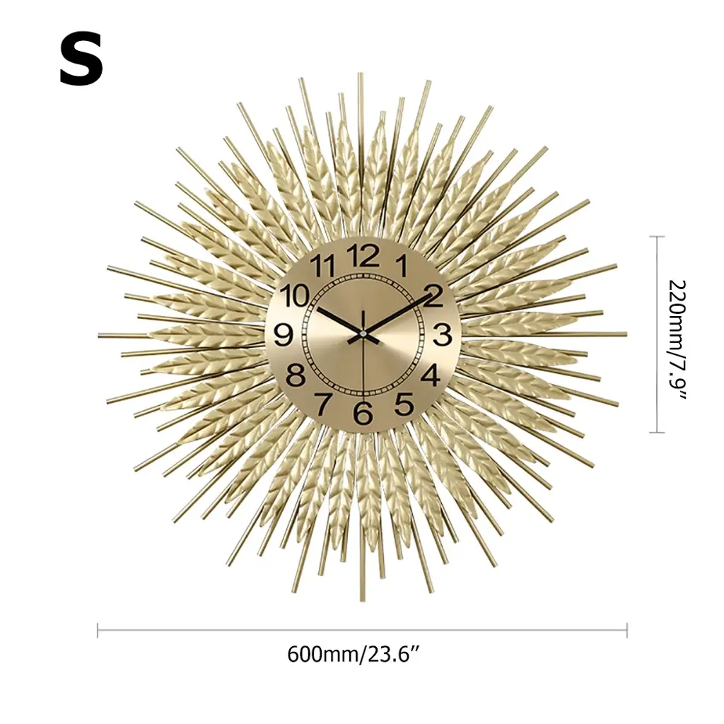 Small 3D Sunburst Metal Oversized Wall Clock Wheat Home Decor