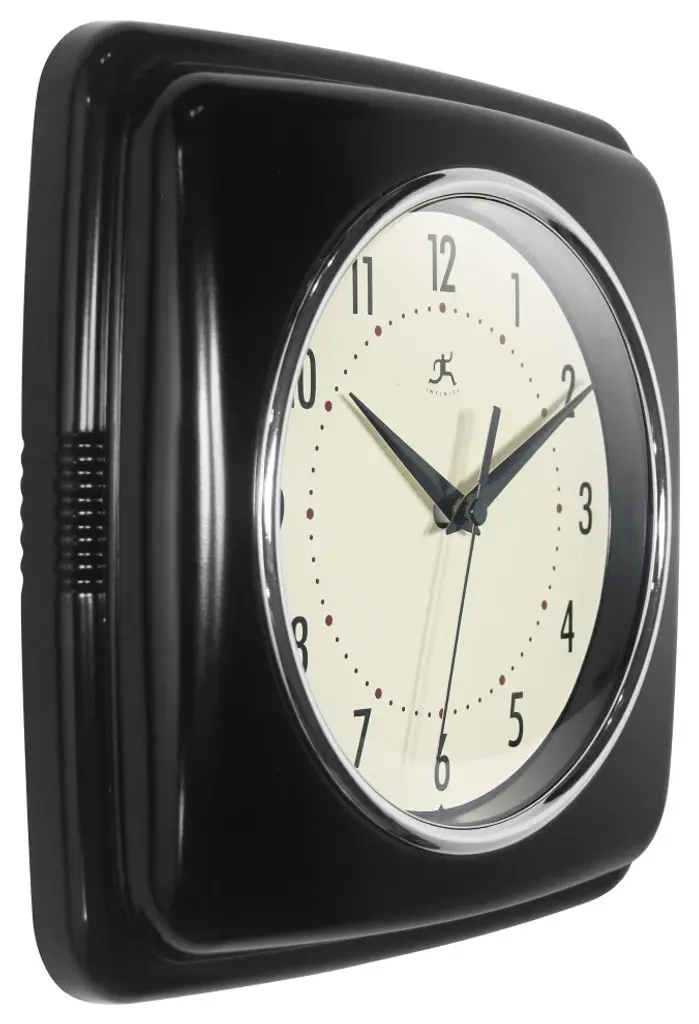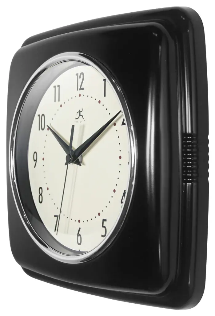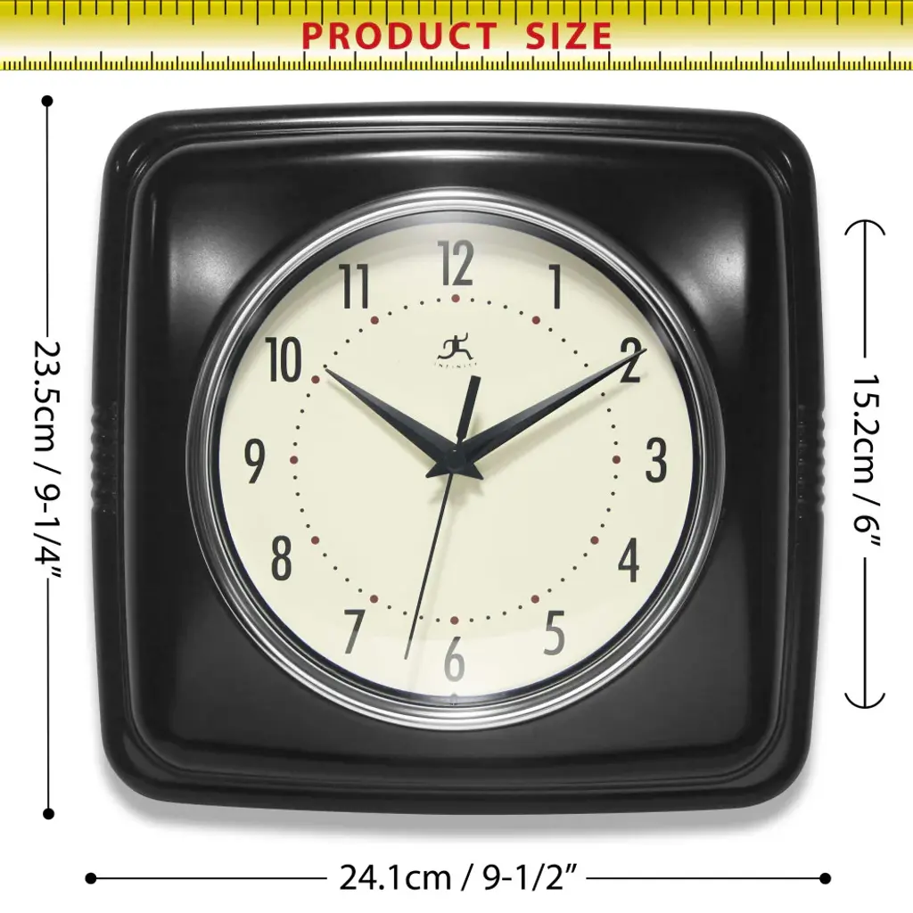 Infinity Instruments 9.25" Square Retro home essential wall clock can give your home that retro feel. With a square designed case this amazing clock will bring you back in time.
