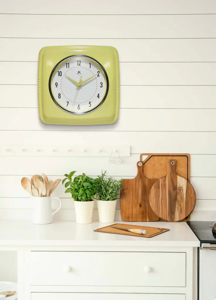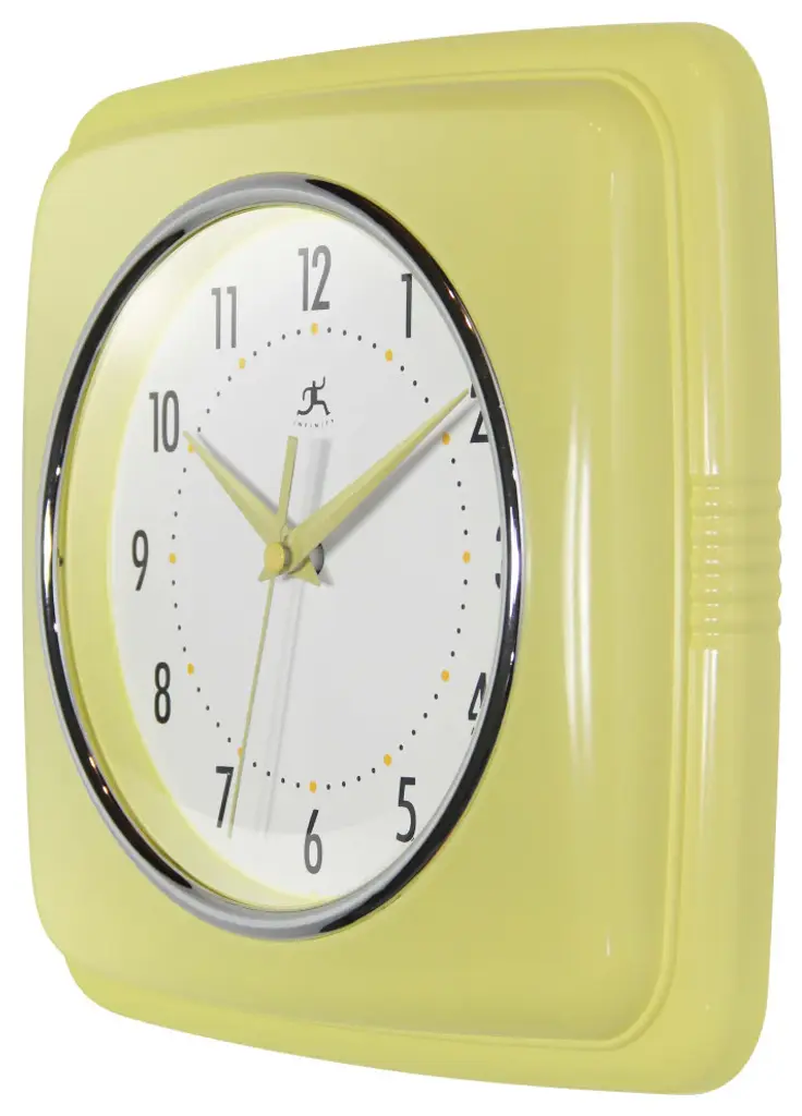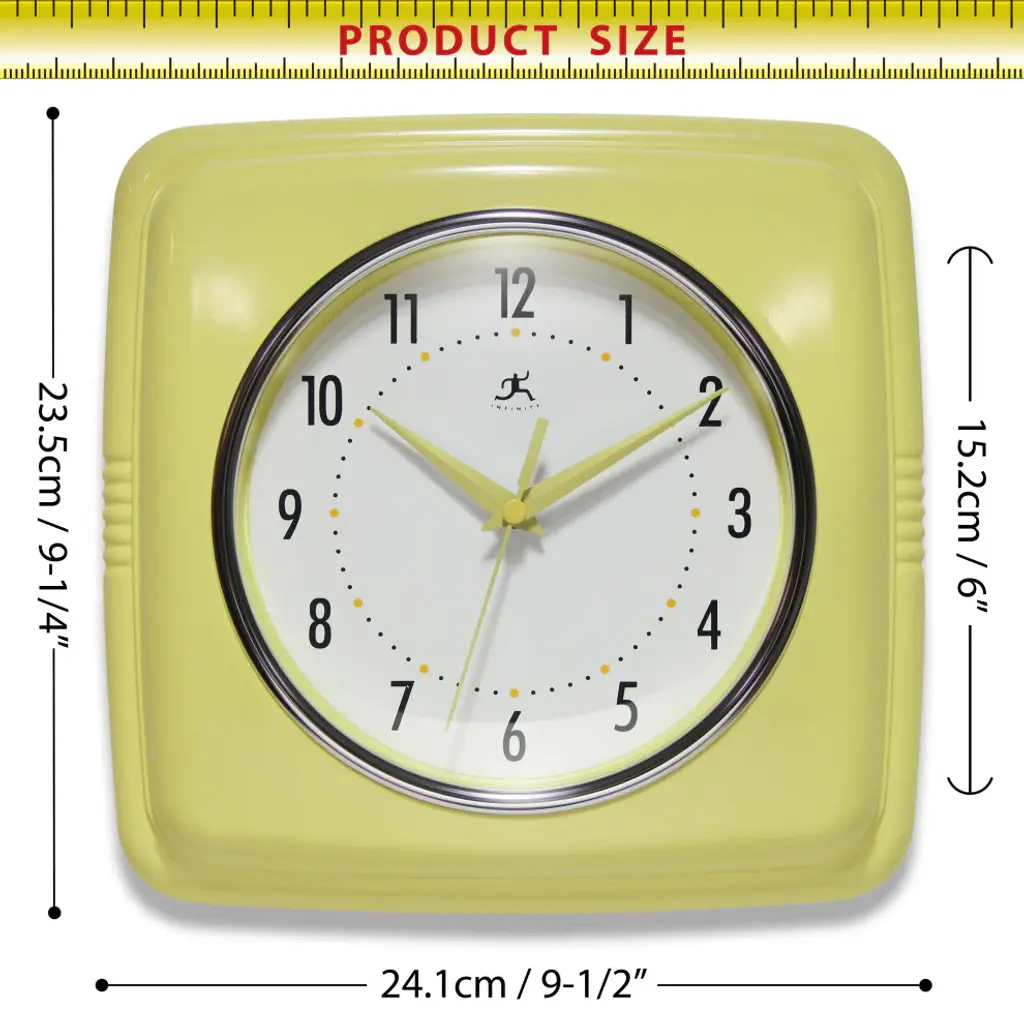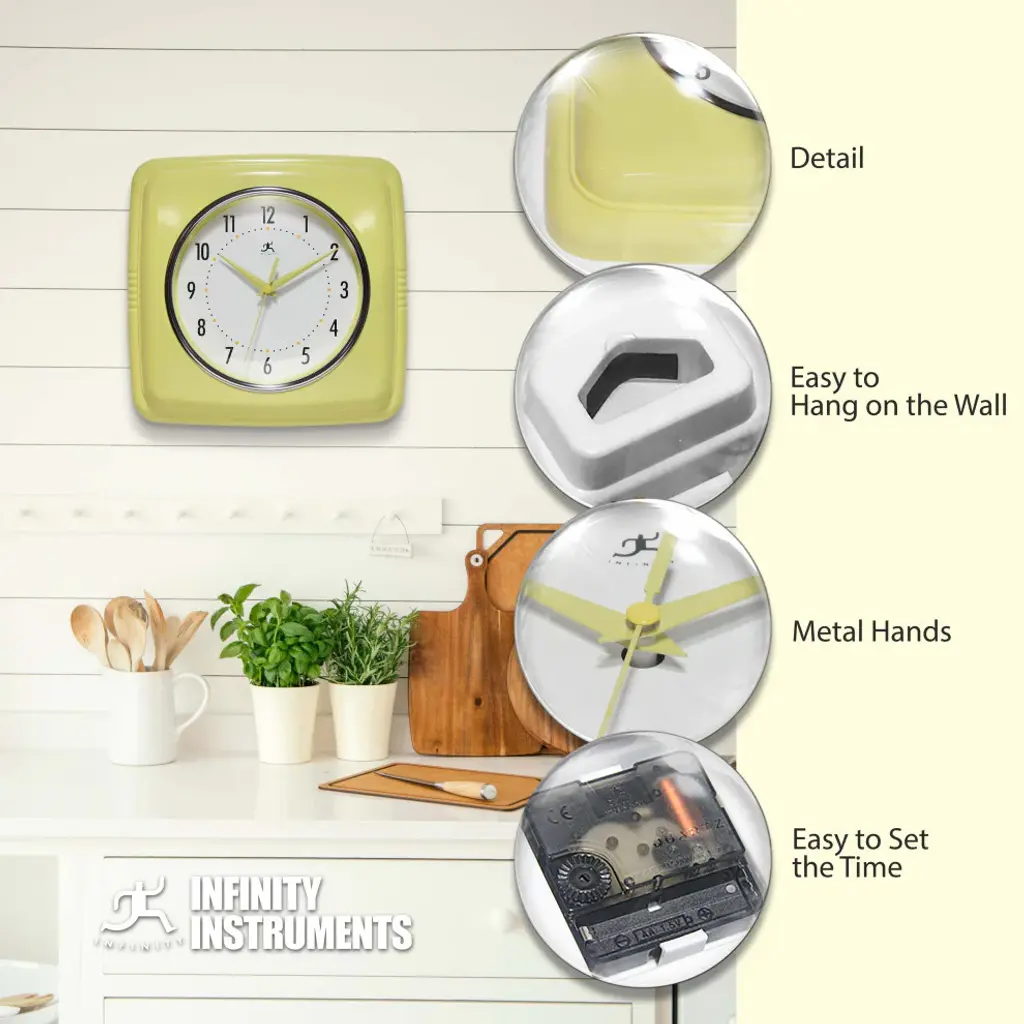Infinity Instruments 9.25" Square Retro home essential wall clock can give your home that retro feel. With a square designed case this amazing clock will bring you back in time.