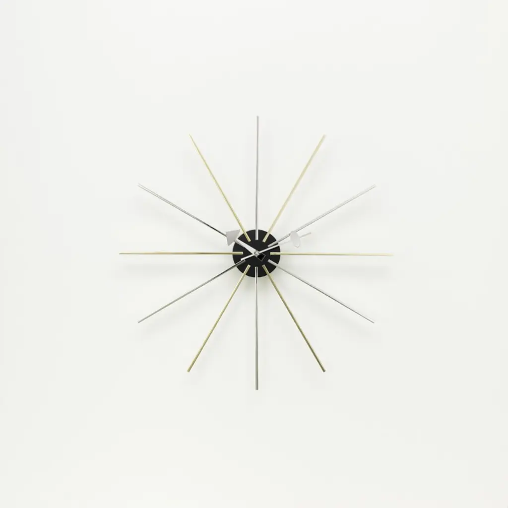 Vitra’s Star Clock from 1955 is an elegant piece of art that will catch the eye in any room. The high-quality quartz movements and carefully designed details make the clock a reliable timepiece as well as a stunning decorative item. Between the years 1948–1960, George Nelson’s office designed over 150 clocks for the American clock manufacturer Howard Miller. The collection consists of wall clocks and table clocks characterized by imaginative shapes, modern spirit and the absence of numbers. Nelson’s mission was to add more modern design to ordinary American homes, and he succeeded in a brilliant way – today the clocks are cherished as international design classics and masterpieces of mid-century American design.
