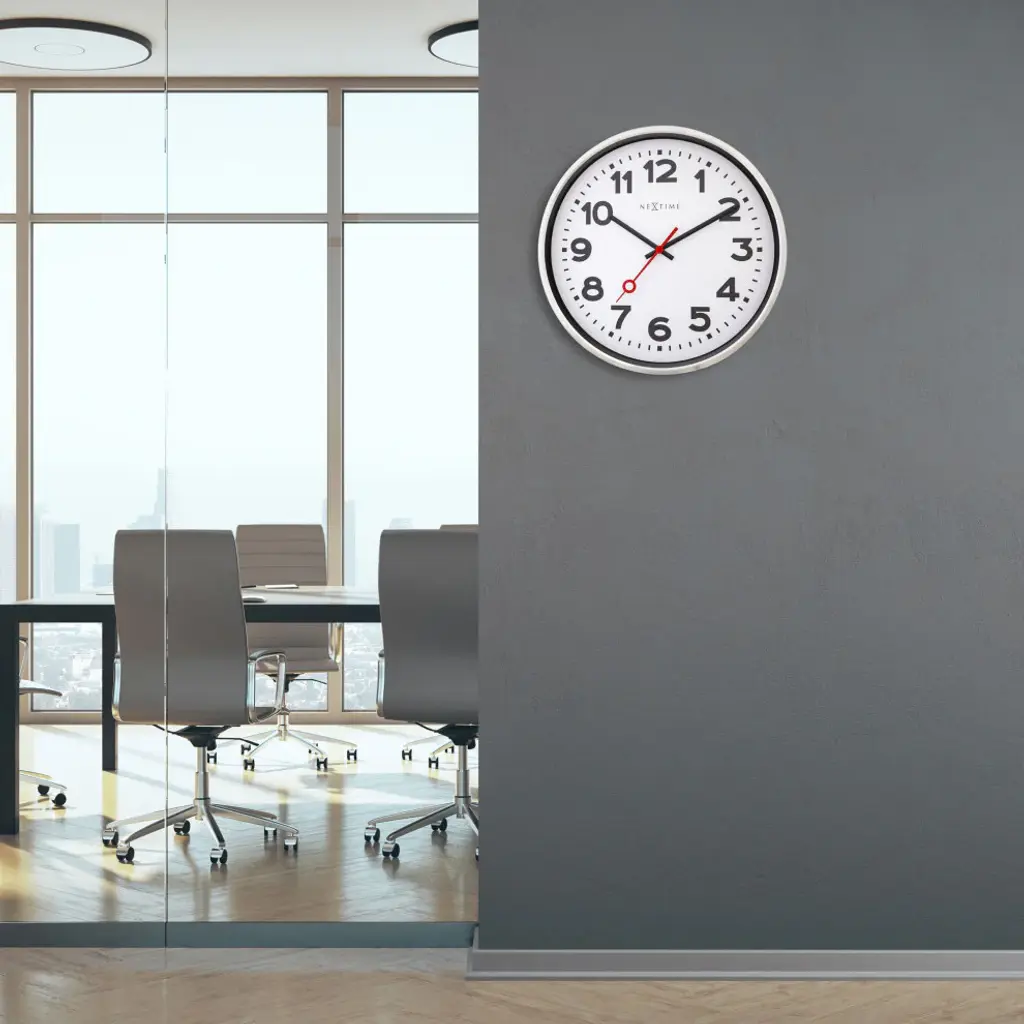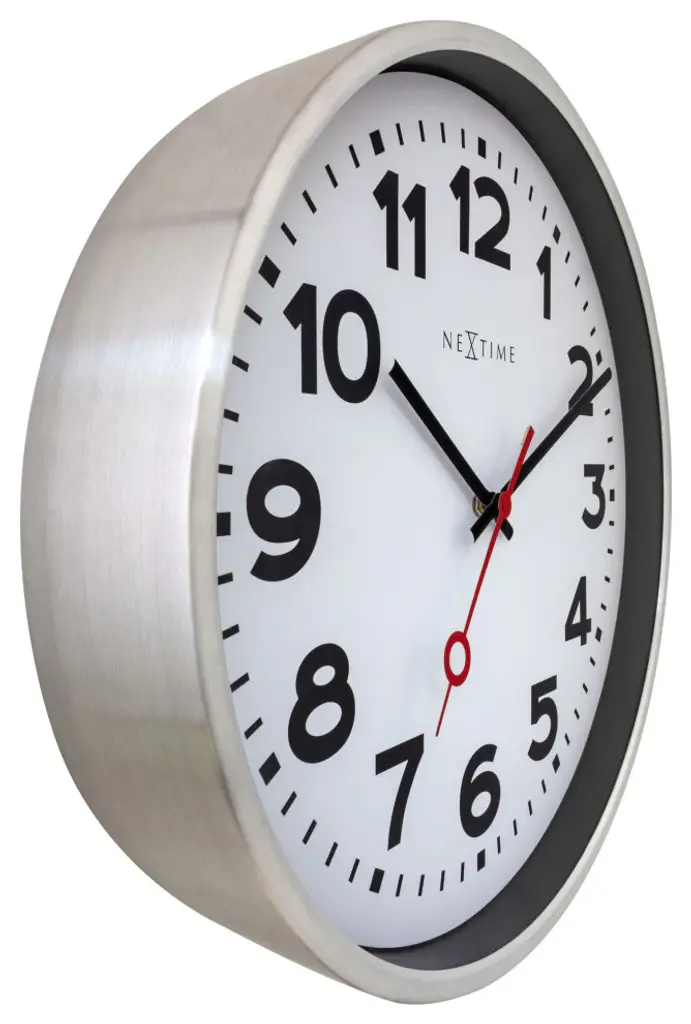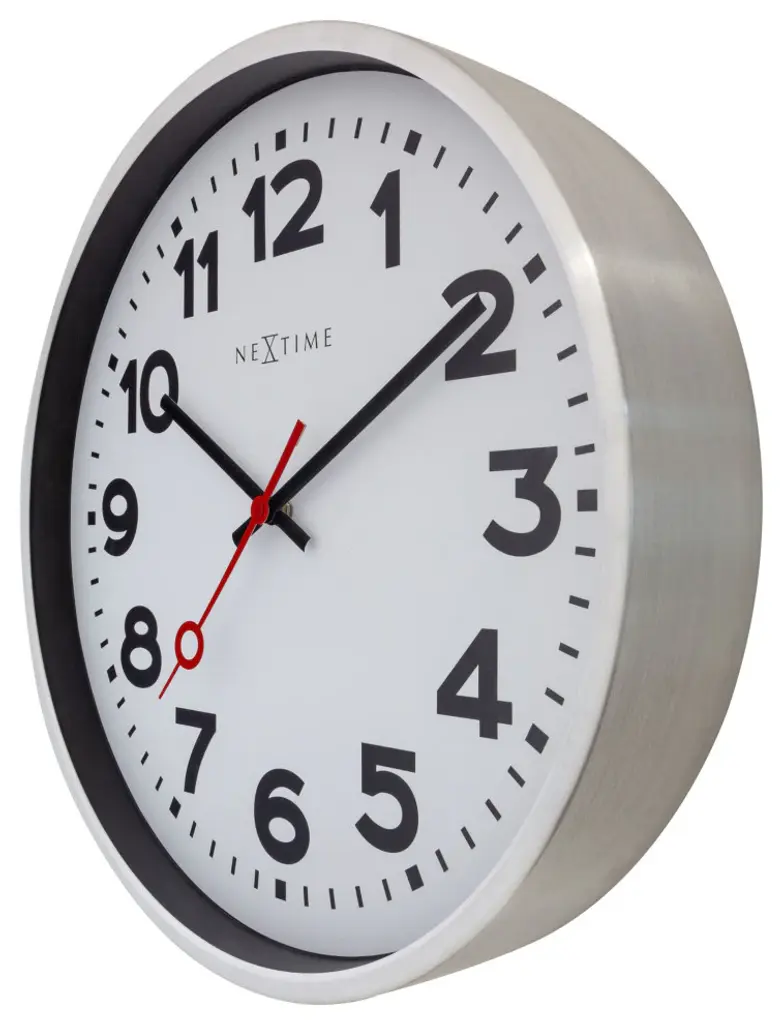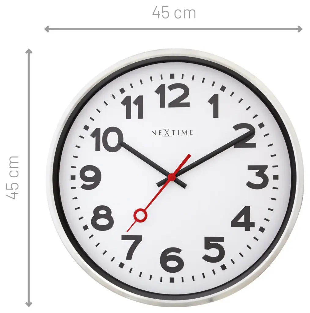 NeXtime''s Station, 17.75-inch metal wall clock is a bigger version of one of our bestsellers. The deep aluminum case is finely cast to create a stout nostalgic appearance, offering everything you look for in a station clock. Features a red second hand which adds a bit of fun to the very simple design! This clock is silent (no ticking sound), and it runs on 1 x AA battery (not included)