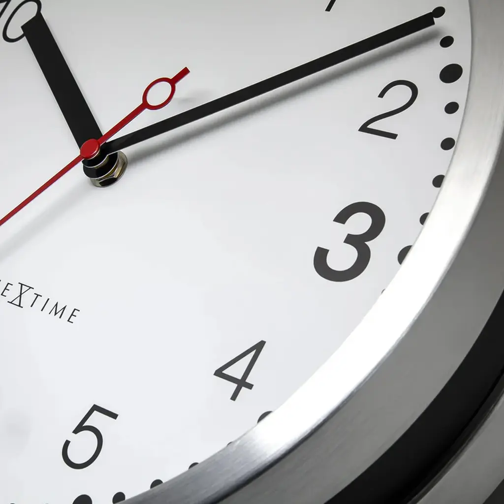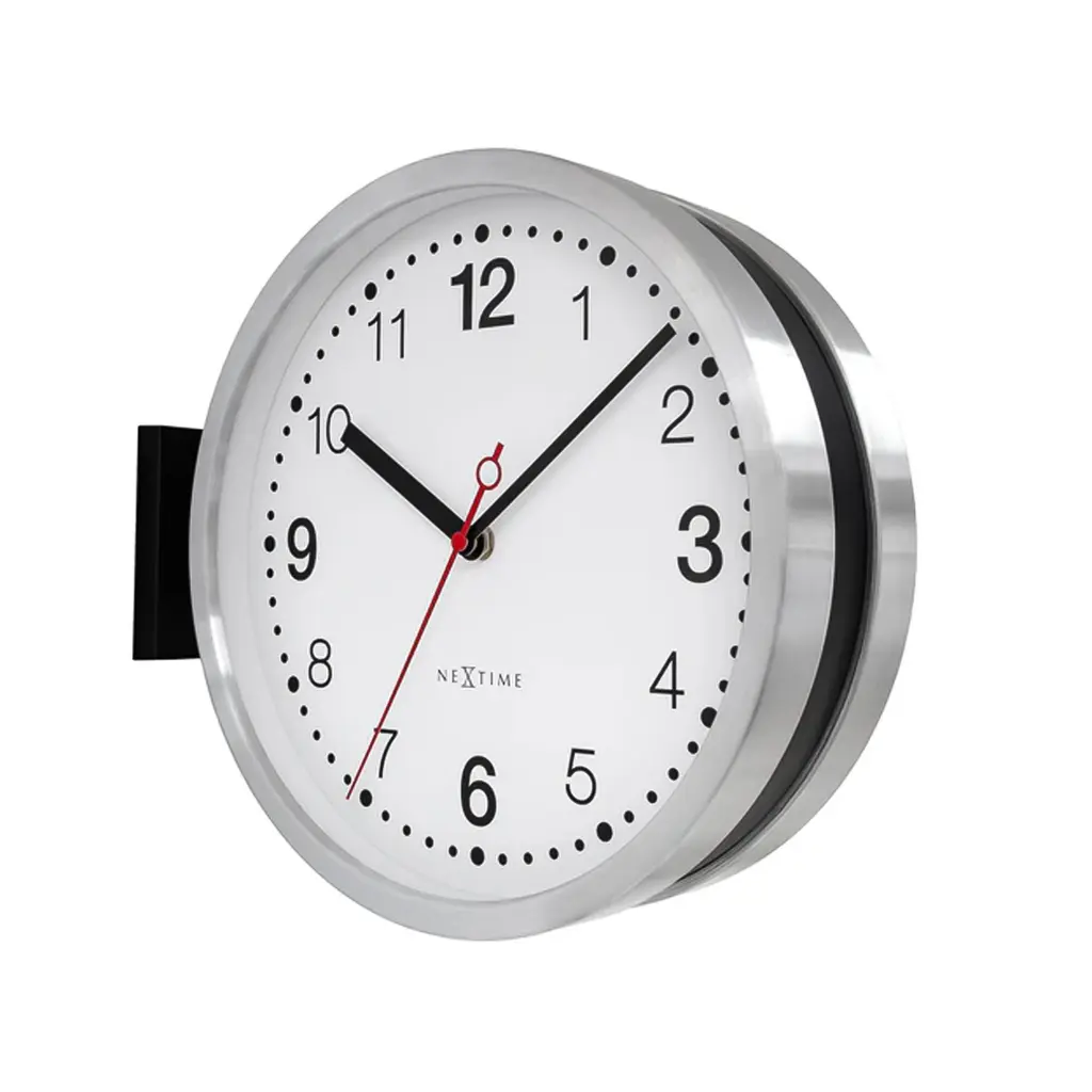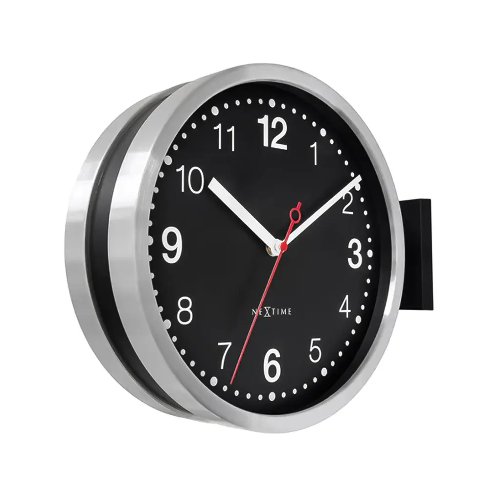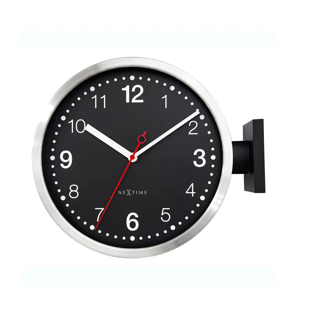 This exceptional station clock features not one, but two clock faces, allowing you to hang it anywhere and easily check the time from two different angles. The clock boasts a silent movement, ensuring a peaceful environment while accurately keeping time. For your convenience, it operates on 2 AA batteries (batteries not included).