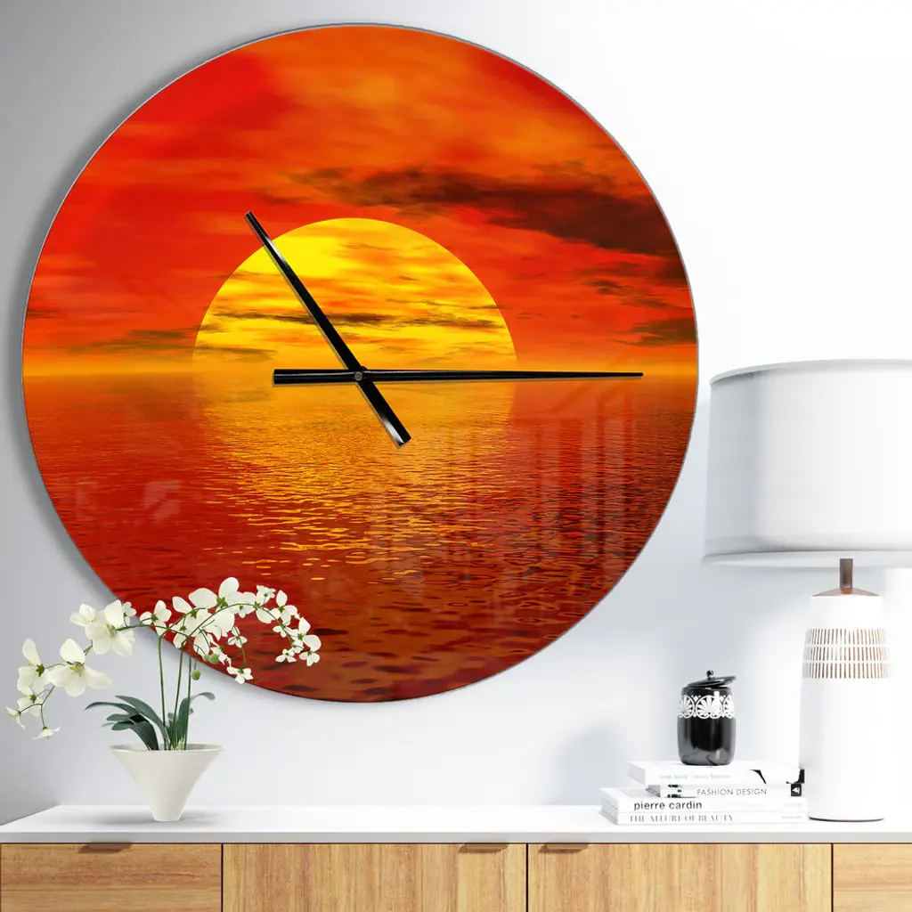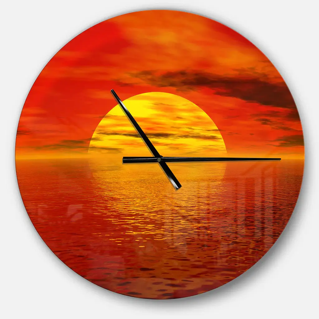 Sun Falling To Yellow Ocean Large Coastal Metal Clock, 23x23
