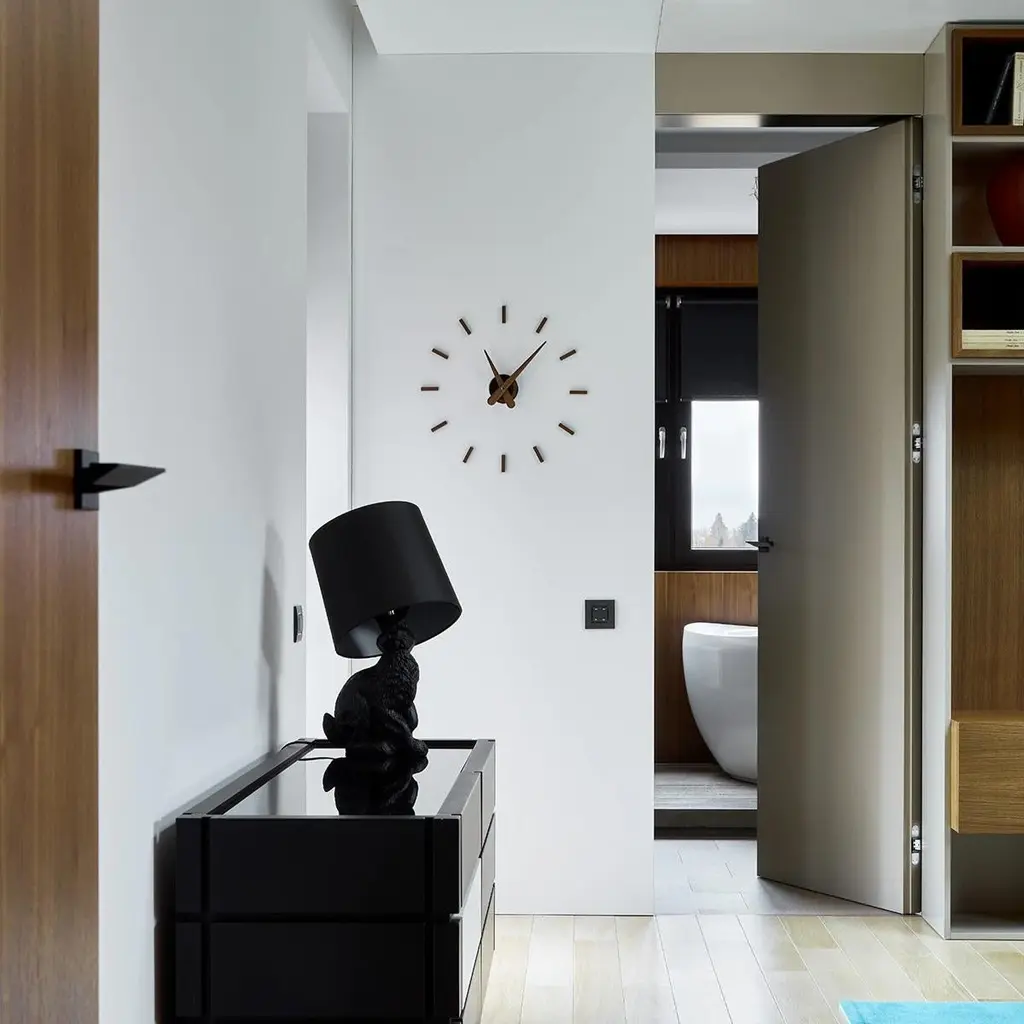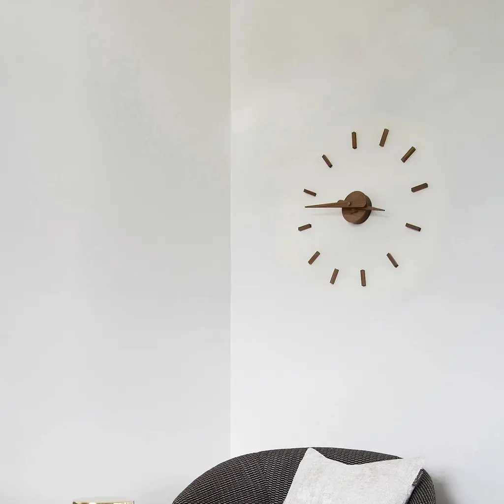 Wall clock with box and wooden time signs. The wooden hands are fixed to the German-made UTS quartz machinery.The Sunset N Clock is a wall clock that's mini size because it has a diameter of 50 cm. Sunset N wall clock: 12 time signals in walnut, walnut hands and box. Each clock is a unique handmade piece.California Residents: Prop 65 regulations.
