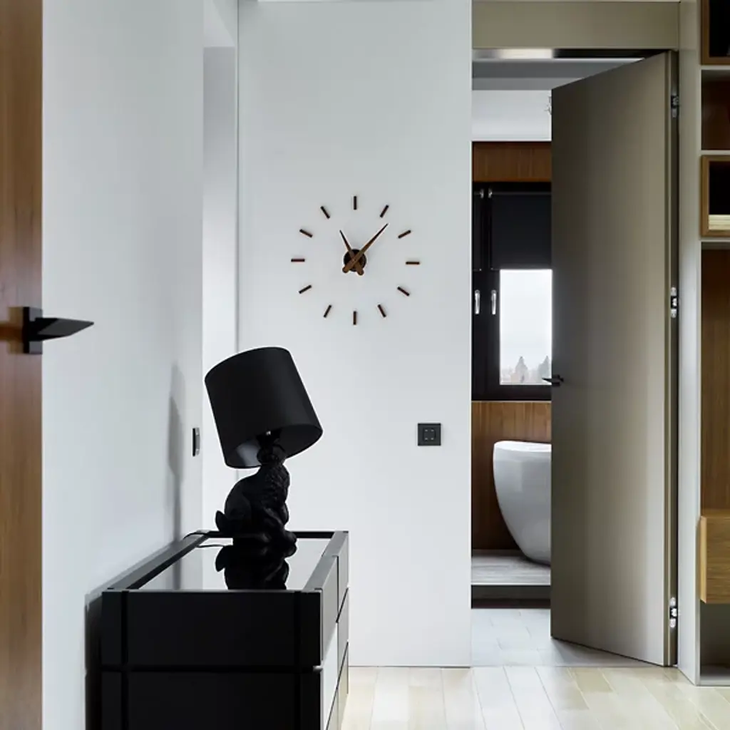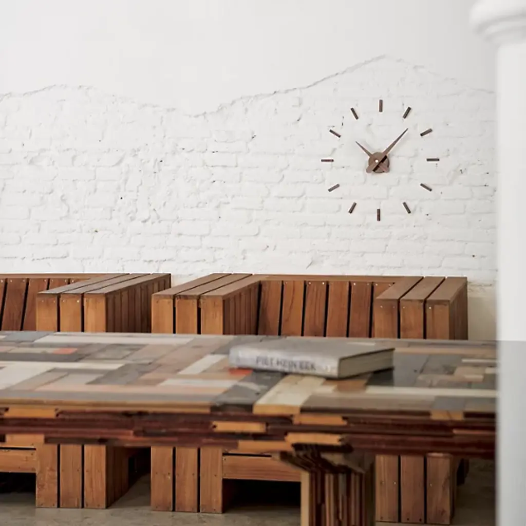 The shape of the sun. The Sunset Wall Clock by Nomon is a beautiful décor piece for a variety of rooms in the home. Hand made from beautiful materials such as an option between different steel finishes along with gorgeous walnut wood hands. This piece will easily enhance a room and offer a minimalistic vibe.