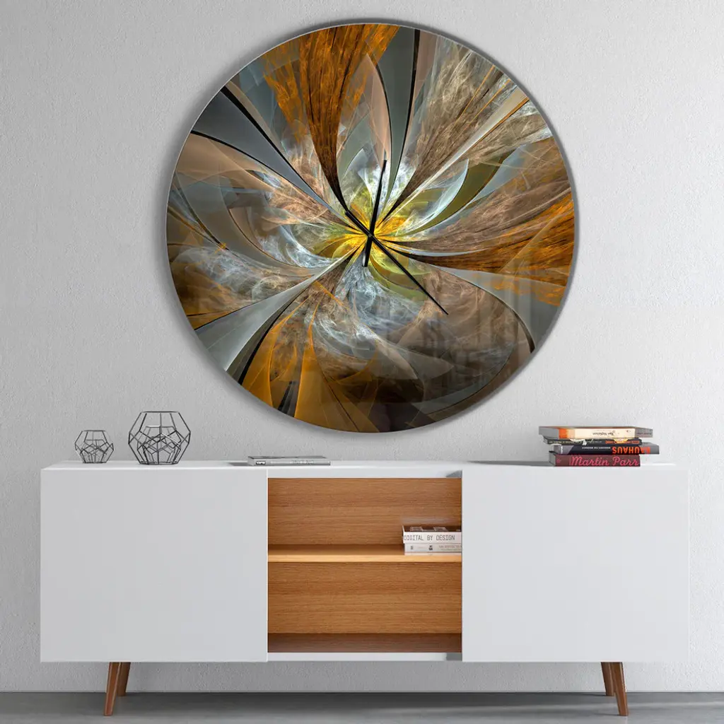 A beautiful addition to any home or office, this Modern & Contemporary round wall clock is made on 100% solid aluminum. It has a highly reflective glossy finish creating a sleek modern look. This Symmetrical Yellow Fractal Flower wall clock arrives completely ready to hang on the wall. Simply insert the "AA" battery included with your order.Available in several size, this Modern Oversized Clock makes it the focal point of any room.Features - Ultra Gloss Coating ensures colors are extra vibrant with light reflection. - 1mm Aluminum grade sheet metal. - 1-inch mounting frame gives the illusion of artwork floating on the wall. - Mounting brackets and instructions are included. - High quality digital images are created directly into a glossy aluminum panel, producing a stunning and captivating print in the glossy finish of the metal. - Looks better than any photo paper and guaranteed to last at least 20 years. - Easy to clean with a microfiber cloth. - "AA" battery included with your order. - Easy to hang.See Options drop down for available sizes.