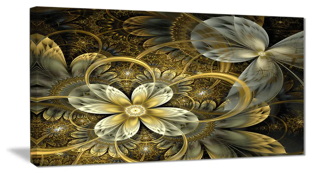 Symmetrical Yellow Fractal Flower Oversized Modern Metal Clock, 36x36