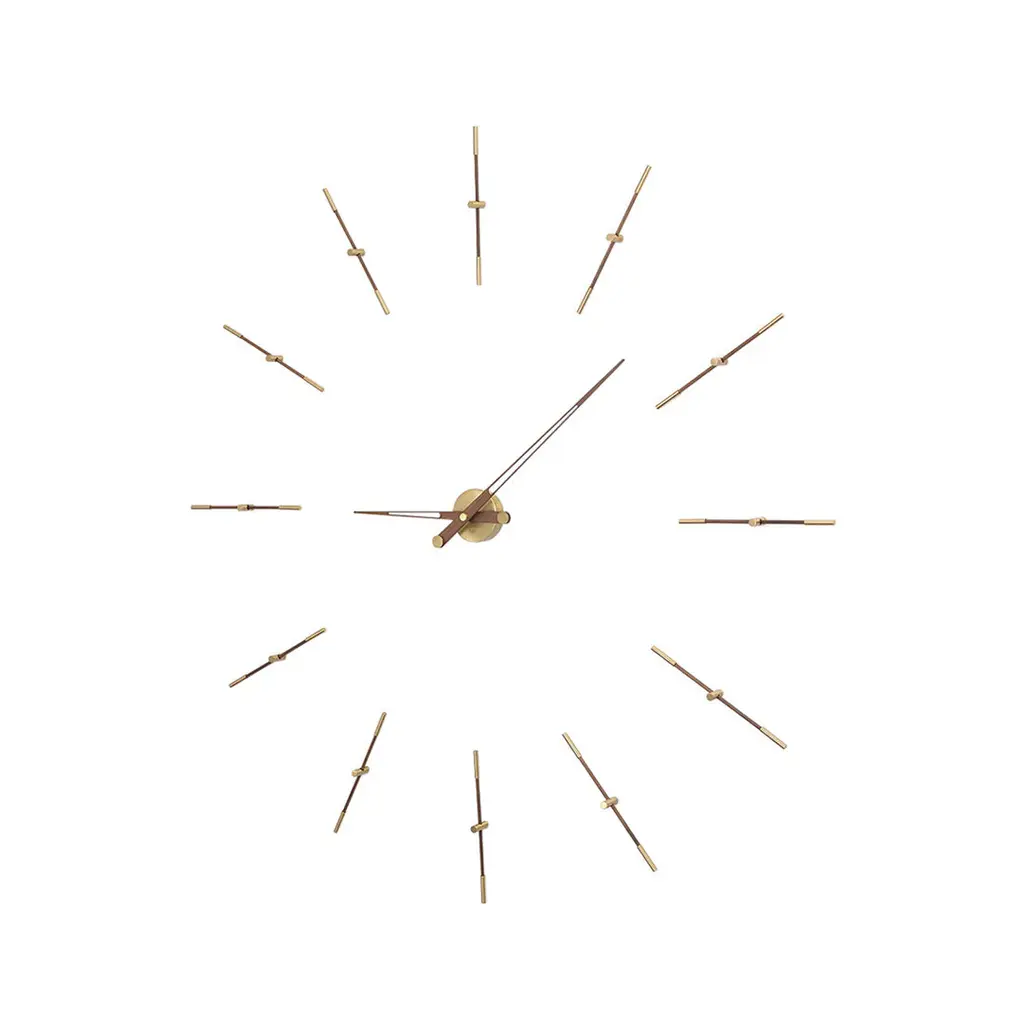 The essence of modernist simplicity, Nomon's Tacón 12 features a graphic wall display with 4 or 12 time signals and spear-like hands in variations with either a polished brass or chromed finish. Apropos for conference rooms and offices as well as in the home, the wall clock comes in a choice of 2 sizes and is powered by a German-origin UTS.