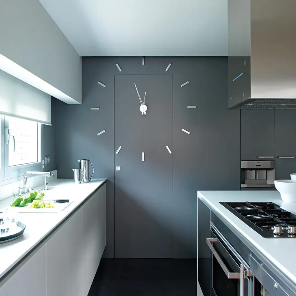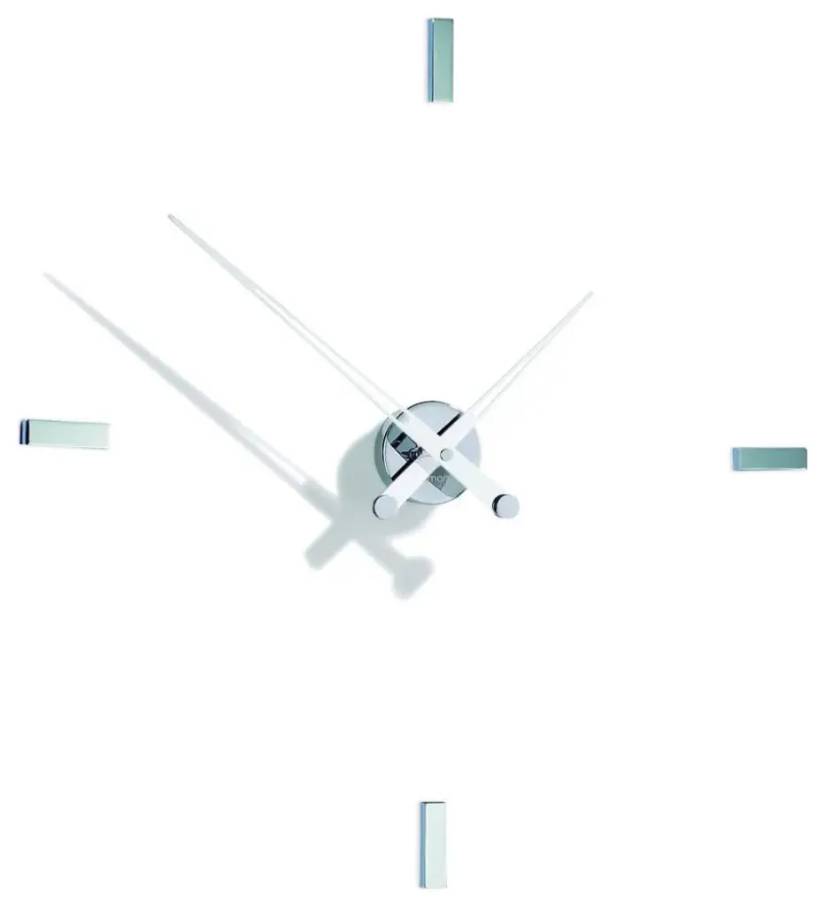 The essence of modernist simplicity, Nomon's Tacón 12 features a graphic wall display with 4 or 12 time signals and spear-like hands in variations with either a polished brass or chromed finish. Apropos for conference rooms and offices as well as in the home, the wall clock comes in a choice of 2 sizes and is powered by a German-origin UTS.