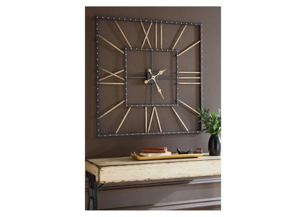 A huge clock, especially one that's unique, is an easy way to incorporate casual design into a room's decor. With the Thames square wall clock, you'll always know what time it is. The openwork design cleverly incorporates a Roman numeral clock face with traditional hands in a black frame. Its clean look can complement many different types of decor, from modern to traditional. Weight 14.000 lbs. (6.3kgs.)