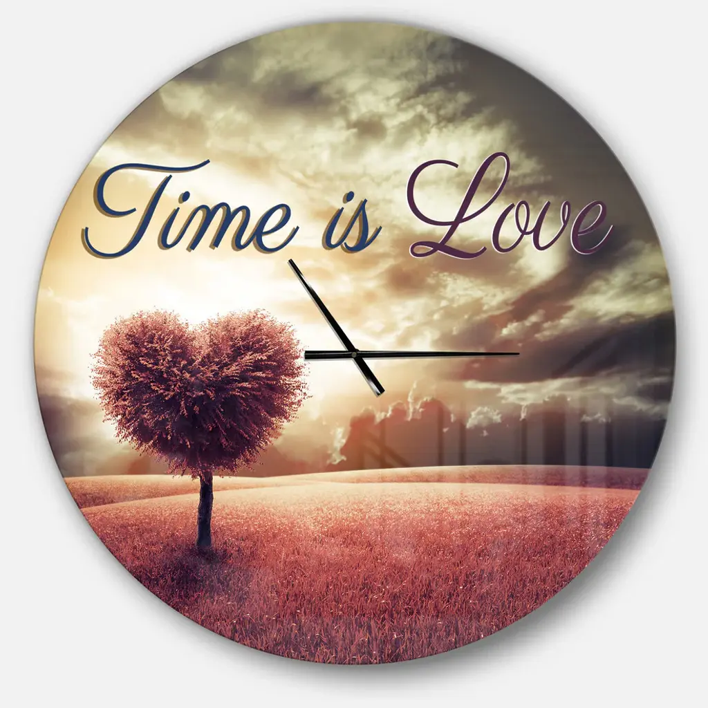 Time Is Love Pink Heart Tree Oversized Quote Metal Clock, 36"x36"