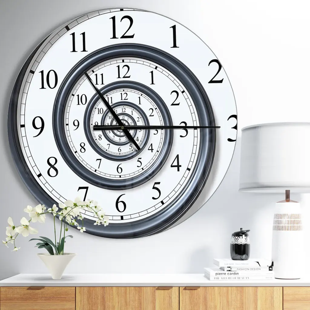 Time Spiral Analog Wall Oversized Contemporary Metal Clock, 23x23