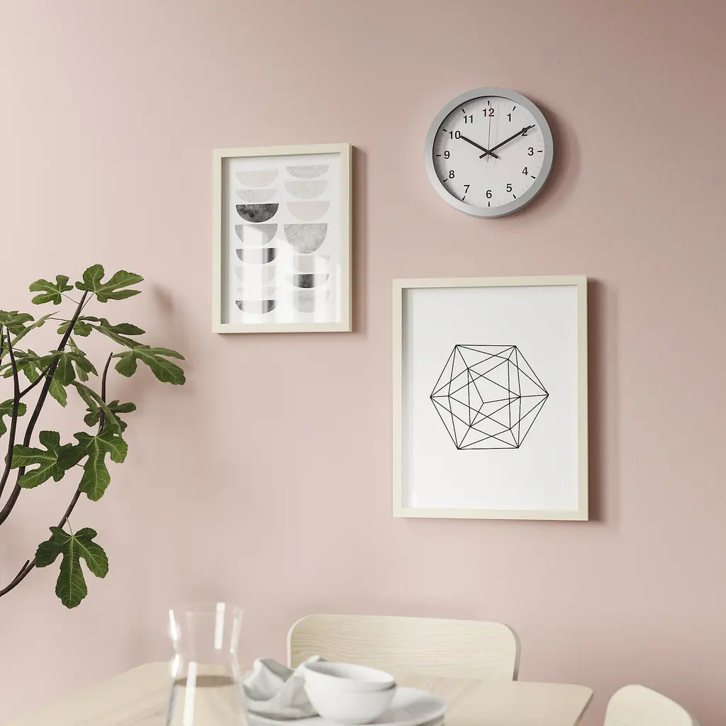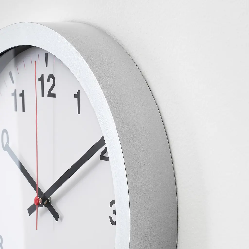 TJALLA Wall clock - silver color 11 ". Fitted with a quartz movement, it is accurate at keeping time. No disturbing ticking sounds since the clock has a silent quartz movement. Different wall materials require different types of fasteners. Use fasteners suitable for the walls in your home.