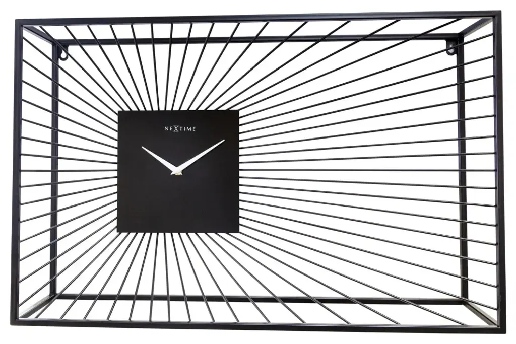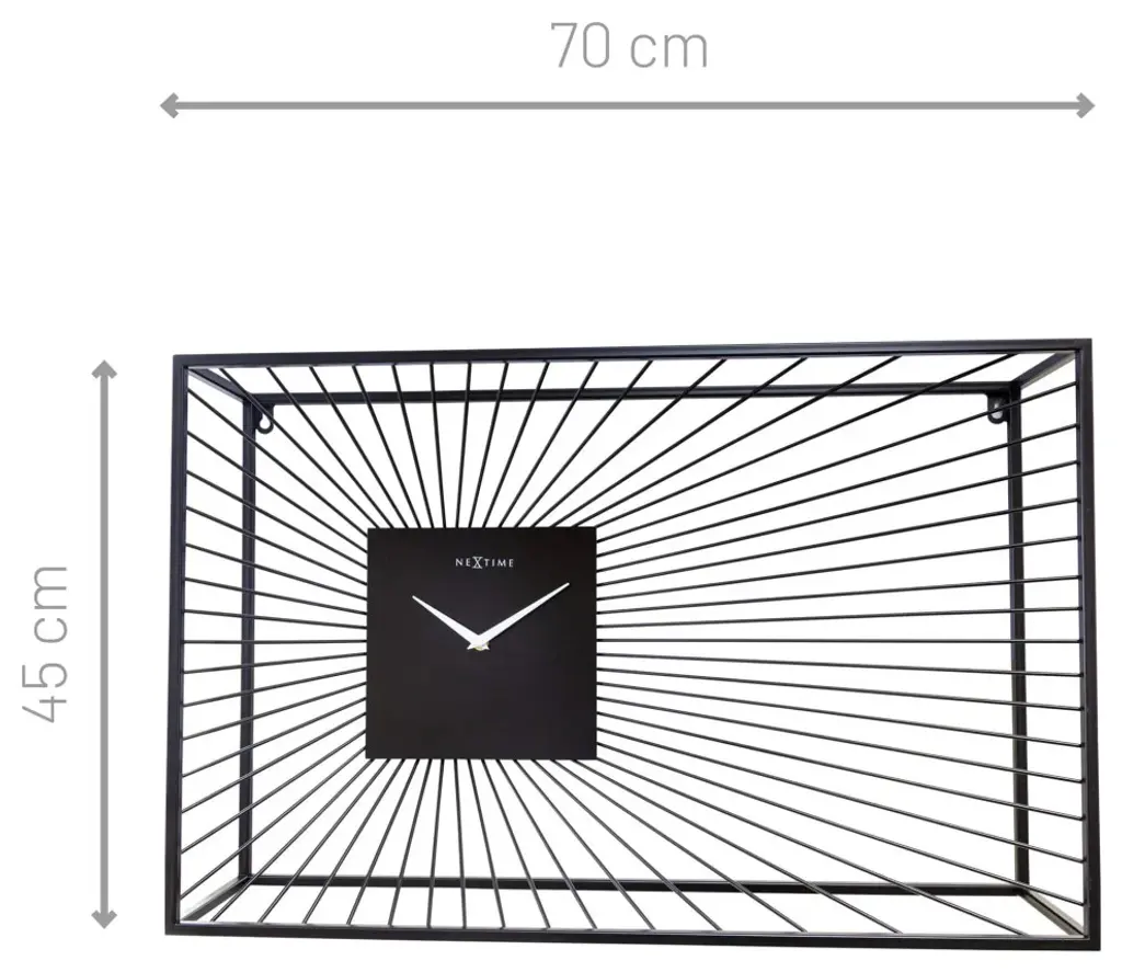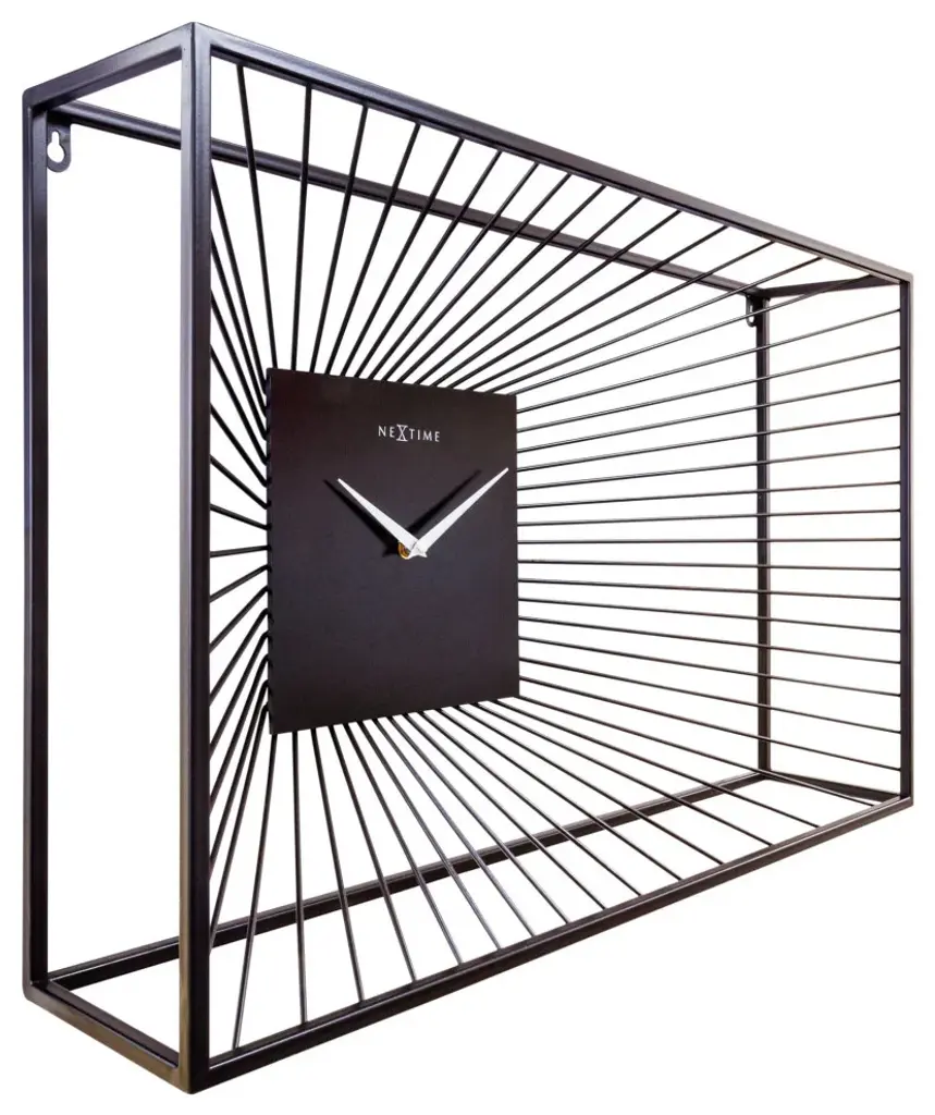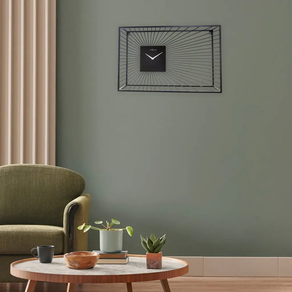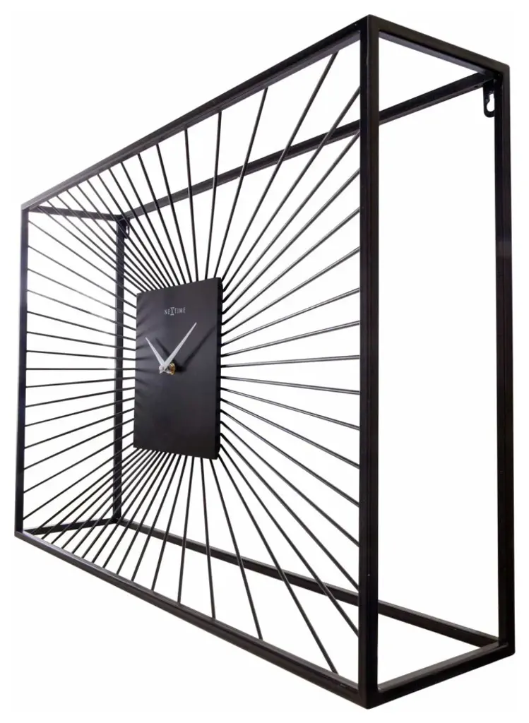 NeXtime''s Vasco large silent wall clock is a modern metal sculpture. Black metal wires radiating from the dial elevate the clock from being a time device to a centerpiece, truly a work of art. It gives off an intriguing look for the entire room with its depth and design. This spectacular display casts shadows of interest on your wall! Runs on 1 x AA battery (not included). Comes in rectangular or square options.