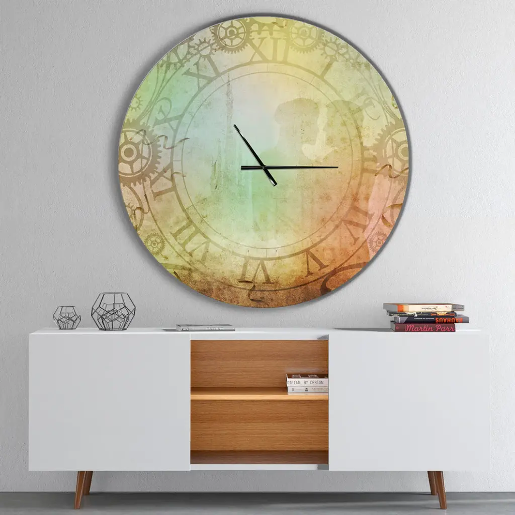 A beautiful addition to any home or office, this Modern & Contemporary round wall clock is made on 100% solid aluminum. It has a highly reflective glossy finish creating a sleek modern look. This Vintage Antique style wall clock arrives completely ready to hang on the wall. Simply insert the �AAA� battery included with your order.Available in several size, this Modern Oversized Clock makes it the focal point of any room.Features - Ultra Gloss Coating ensures colors are extra vibrant with light reflection. - 1mm Aluminum grade sheet metal. - 1-inch mounting frame gives the illusion of artwork floating on the wall. - Mounting brackets and instructions are included. - High quality digital images are created directly into a glossy aluminum panel, producing a stunning and captivating print in the glossy finish of the metal. - Looks better than any photo paper and guaranteed to last at least 20 years. - Easy to clean with a microfiber cloth. - "AAA" battery included with your order. - Easy to hang. - Style: Contemporary - Material: Metal - Shape: RoundSee Options drop down for available sizes.