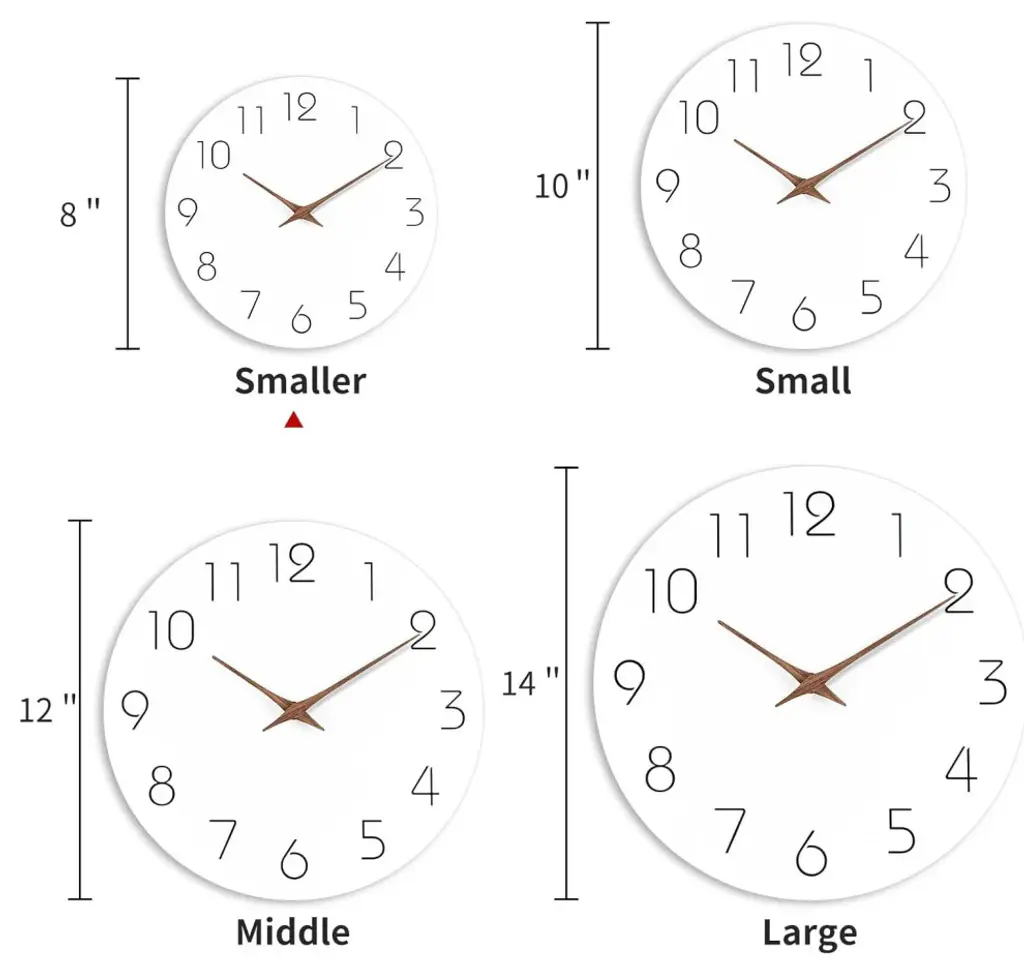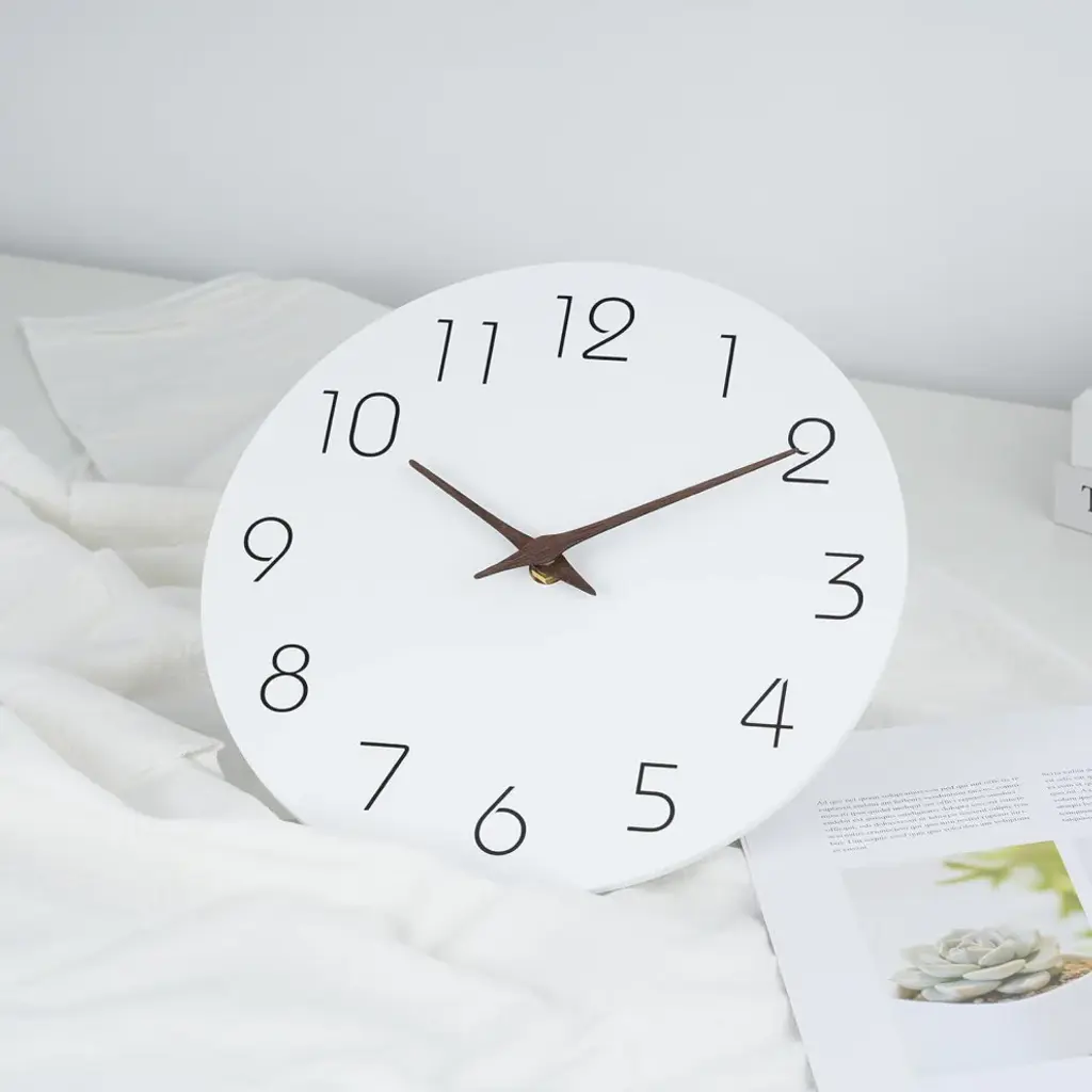 Color:: A_whiteDisplay Type:QuartzStyle: ModernSpecial Feature: Silent ClockProduct Dimensions: :8"W x 1.5"HPower Source:: Battery PoweredAge Range (Description): AdultRoom Type: Kitchen, Bathroom, Bedroom, Living Room, Home OfficeShape: Round1-[Simple Design] - Made of white MDF clock face and black Arabic numbers, brown wooden hour and minute hands, no second hand, no frames and no glass.2-[Silent Environment] - Silent non-ticking quartz sweep movement, which ensure a silent environment for your sleeping and working in any time. Have not any annoying ticking noise.3-[Not just a clock] - Beautiful modern simple wall clock, it is suitable for dining room, school, farmhouse, office, it can also be used as a gift for grandmother, girlfriend or Thanksgiving Day, Christmas gift.4-[Easy to use] - It is easy to use, including 1 x Hook for hang(The wide slot is behind number 12), powered by 1AA Carbon Zinc battery ( Not Include).5-[Customer service] - If you have any question about our product, please contact us in any time, we will try our best to help you solve the problem