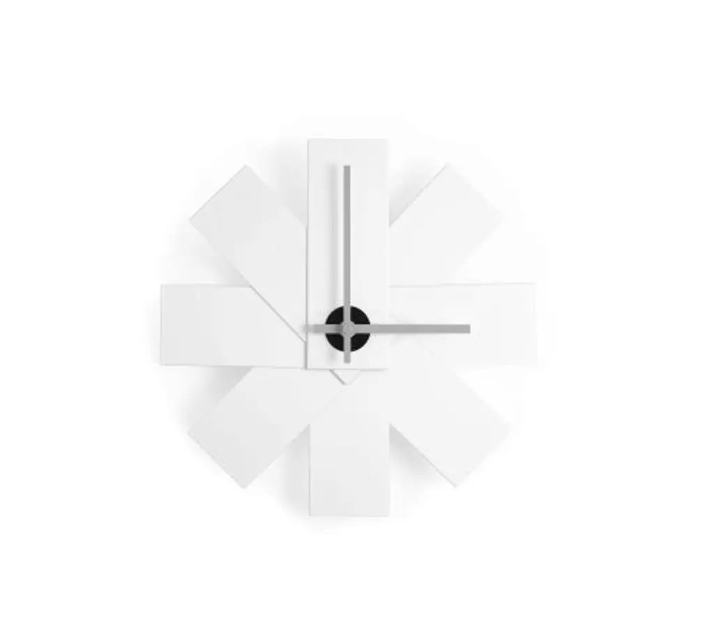 The Watch Me Clock created by Rasmus Gottliebsen features an eye-catching design that makes it hard to ignore or to forget. Eight aluminum rectangles with a matte white finish are arranged in the shape of a fan, reproducing the appearance of color swatches. This version of the clock is made in flat white that accentuates its silhouette, putting the play on geometric shapes at the forefront of the design. A great choice for any modern décor, this white geometric wall clock will look its best on any background. Manufactured from lightweight but sturdy and durable powder-coated aluminum.