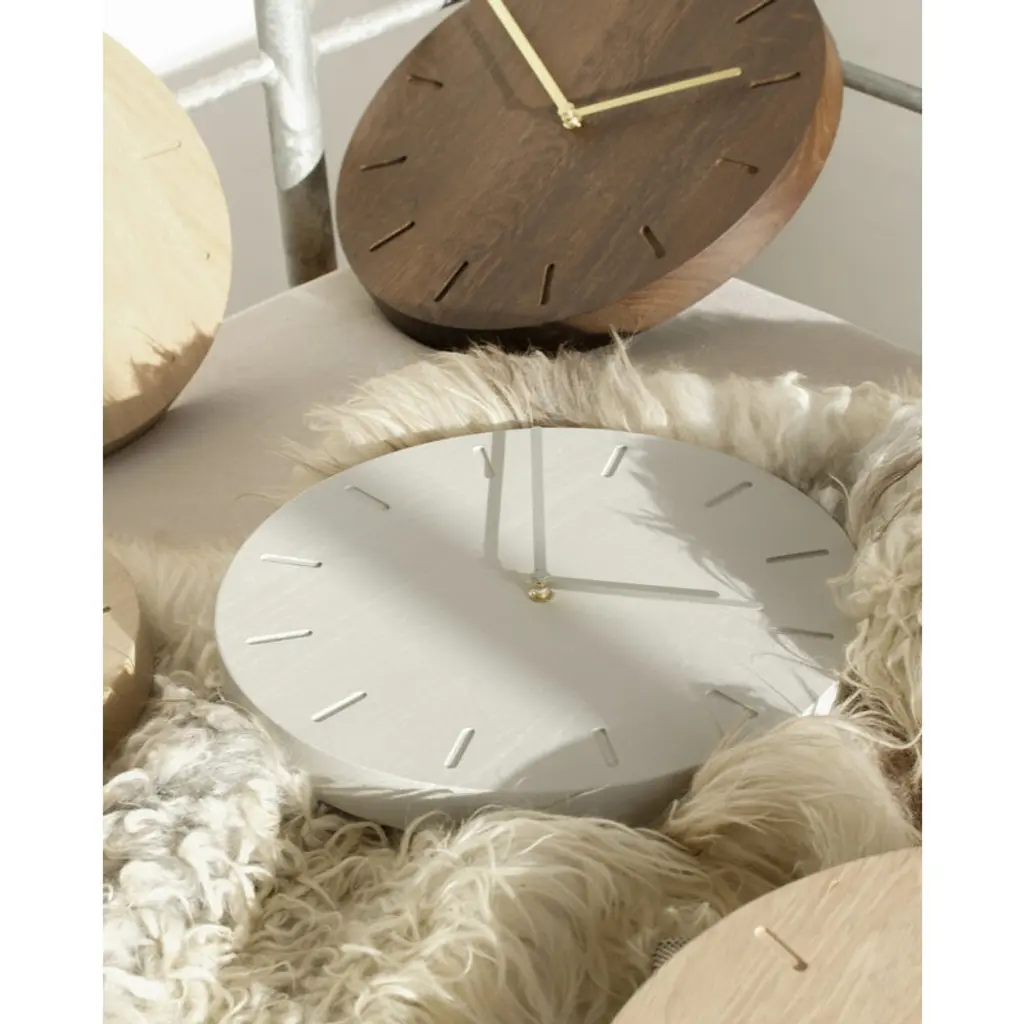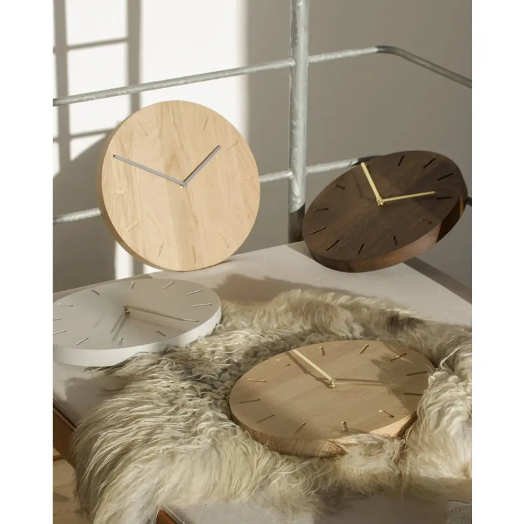 Applicata's Watch:Out wall clock combines a minimalist, understated visual expression with a silent, high-quality clock mechanism. Designed by Anne Boysen, this wooden wall clock is made from solid oak, featuring shiny pointers and engraved numerals on its smooth wooden surface. Ideal for adorning the walls of living rooms, office spaces and cafés alike, the Watch:Out clock not only keeps time but also brings the timeless allure of Danish design and woodworking to any space.