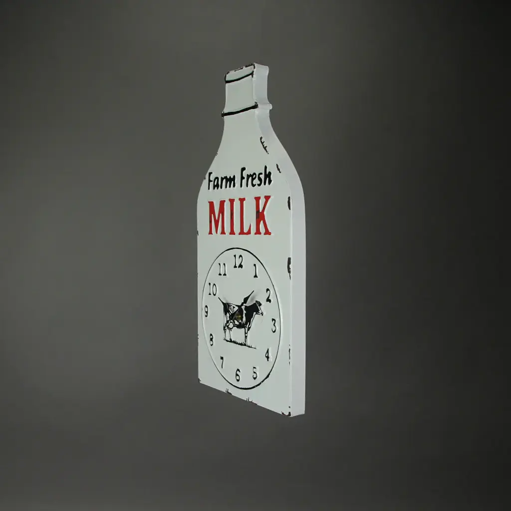 White Enamelware Stamped Metal Quart Milk Bottle Shaped Wall Clock
