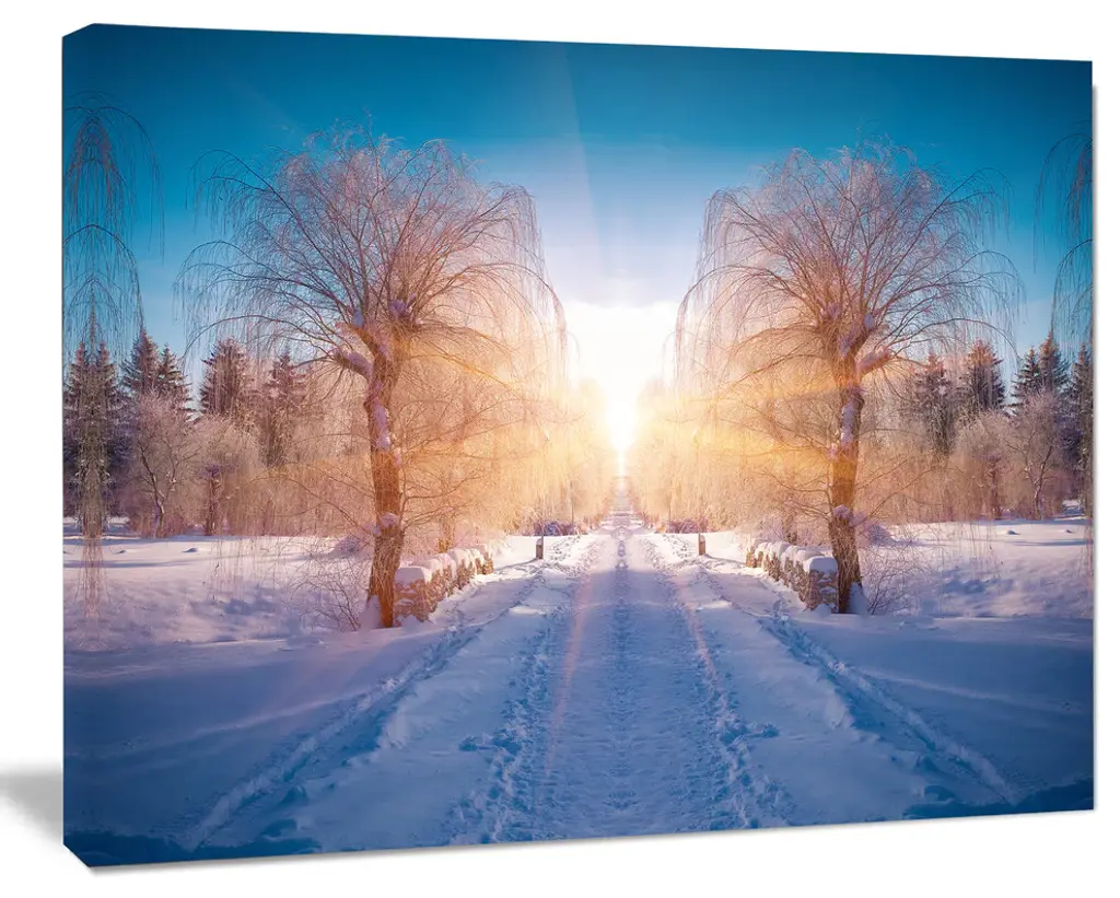Winter Landscape In City Park Traditional Metal Clock, 23x23