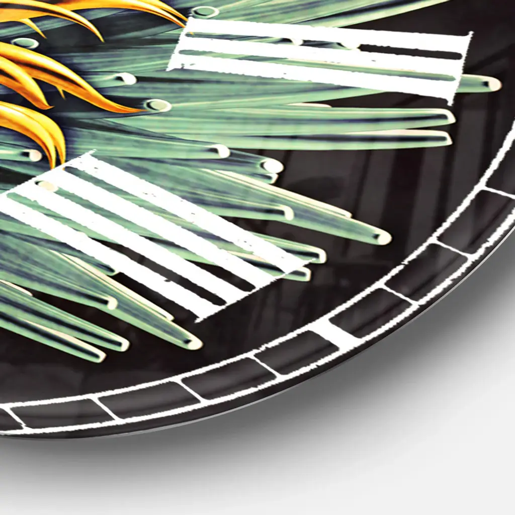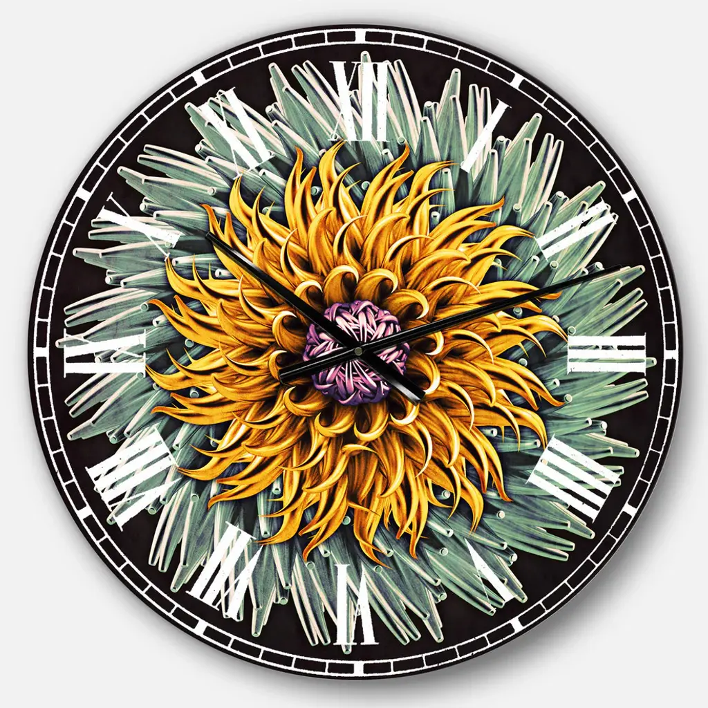 A beautiful addition to any home or office, this Modern & Contemporary round wall clock is made on 100% solid aluminum. It has a highly reflective glossy finish creating a sleek modern look. This Yellow Blue Abstract 3D Flower wall clock arrives completely ready to hang on the wall. Simply insert the �AAA� battery included with your order.Available in several size, this Modern Oversized Clock makes it the focal point of any room.Features - Ultra Gloss Coating ensures colors are extra vibrant with light reflection. - 1mm Aluminum grade sheet metal. - 1-inch mounting frame gives the illusion of artwork floating on the wall. - Mounting brackets and instructions are included. - High quality digital images are created directly into a glossy aluminum panel, producing a stunning and captivating print in the glossy finish of the metal. - Looks better than any photo paper and guaranteed to last at least 20 years. - Easy to clean with a microfiber cloth. - "AAA" battery included with your order. - Easy to hang. - Style: Modern & Contemporary - Material: Metal - Shape: RoundSee Options drop down for available sizes.