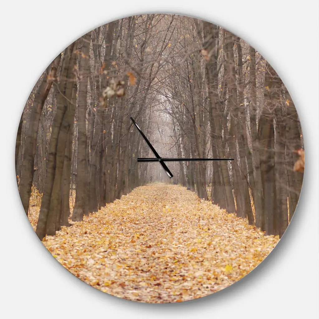 Yellow Road Through Fall Forest Traditional Metal Clock, 36x36