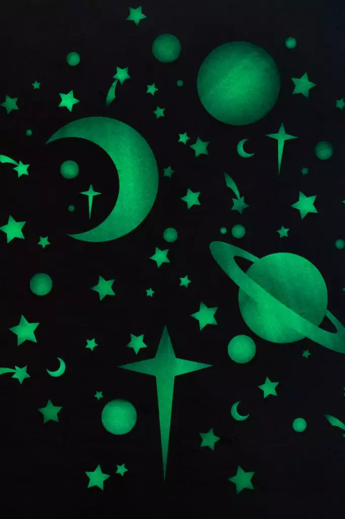 Channel out-of-this-world vibes with this set of glow-in-the-dark wall decals designed as various constellation-inspired elements. Complete with 258 pieces, this set of decals is easy to place and remove. Suitable for smooth surfaces.